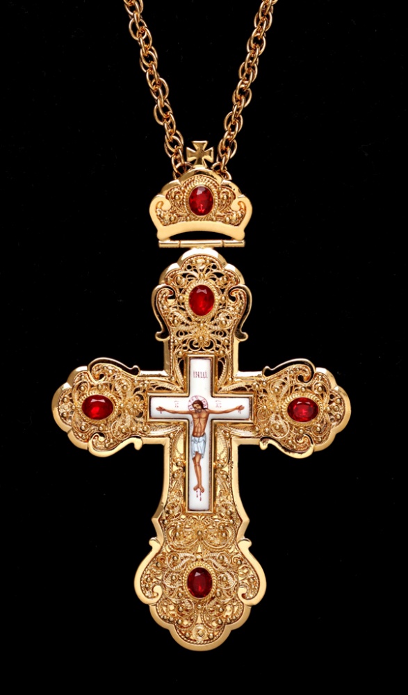 Крест наперсный филигрань №0029 одинарный рант финифть / золочение