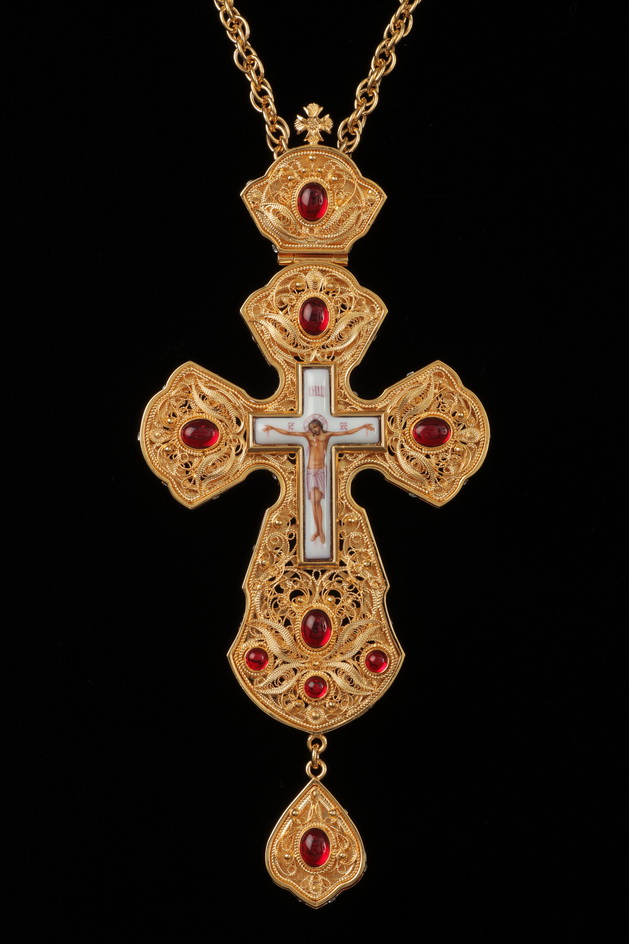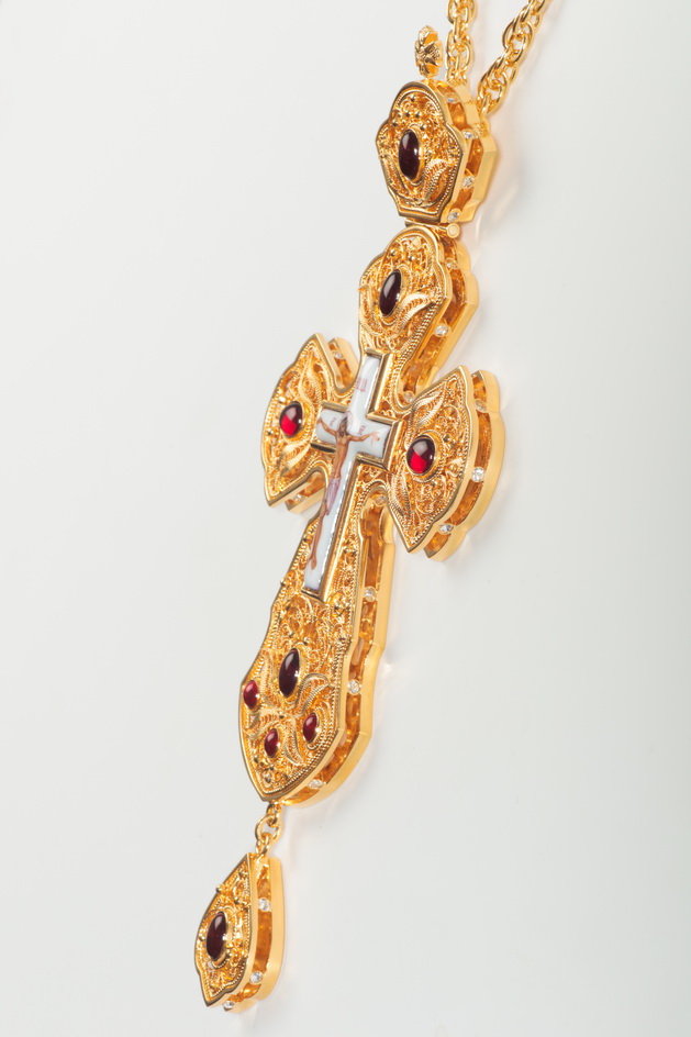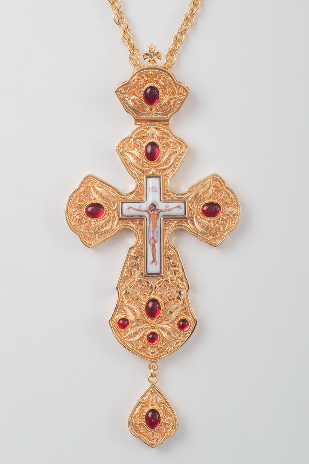 Крест наперсный филигрань №0031 двойной рант, узор, финифть / золочение
