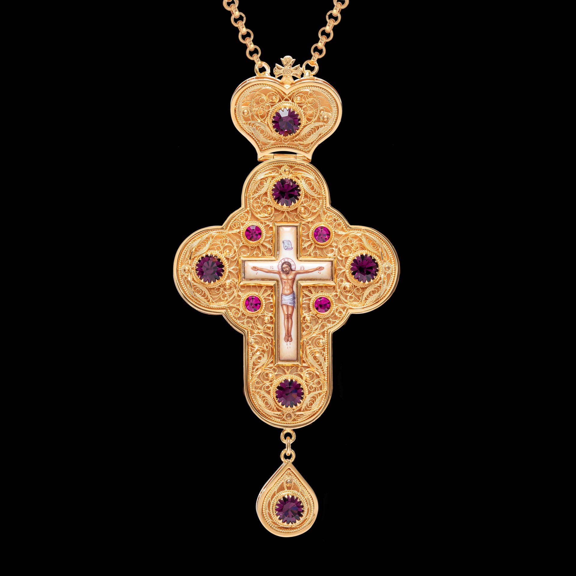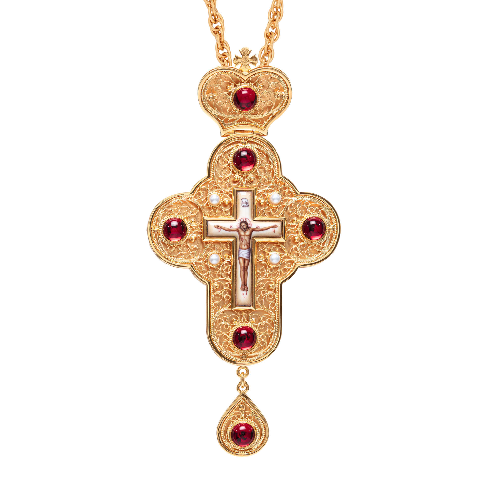 Крест наперсный филигрань №0045 двойной рант финифть / золочение