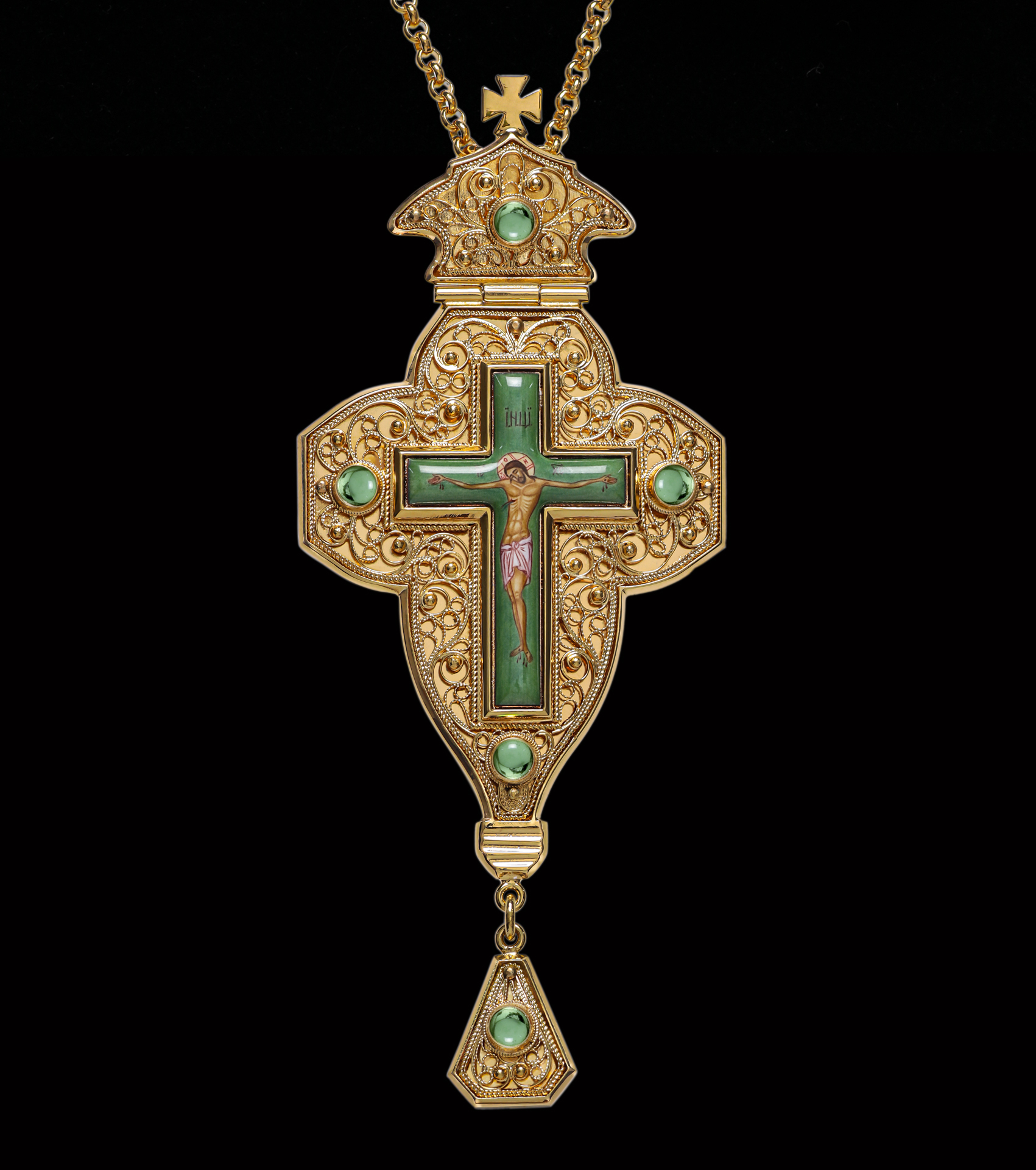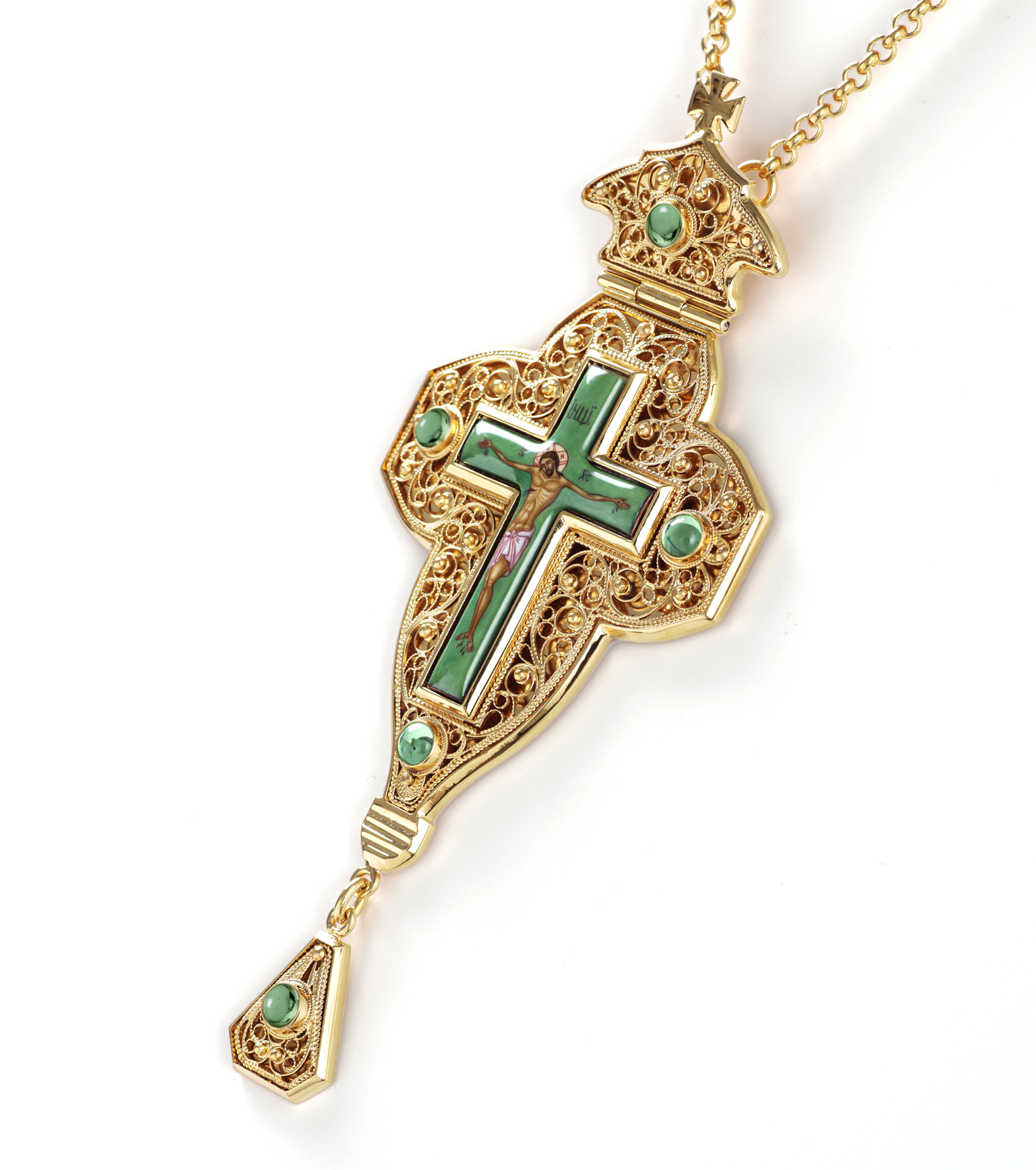 Крест наперсный филигрань №0046 одинарный рант финифть / золочение