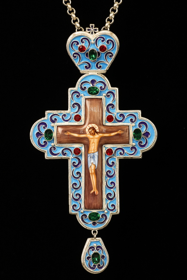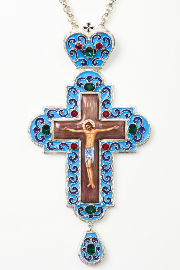 Крест наперсный филигрань №5 эмаль, финифть серебро (УИН)