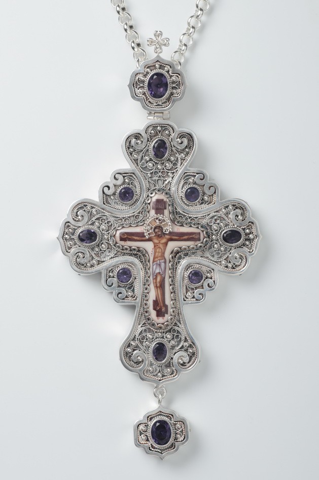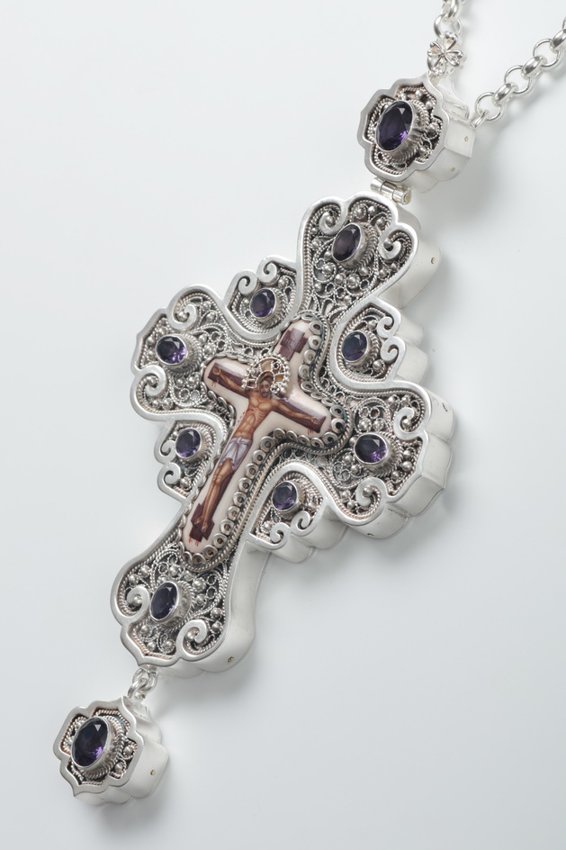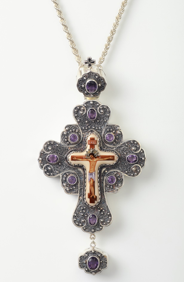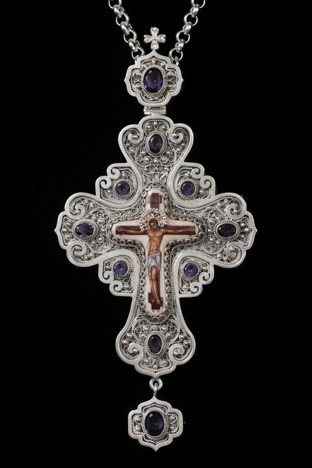Крест наперсный филигрань №6 финифть серебро (УИН)