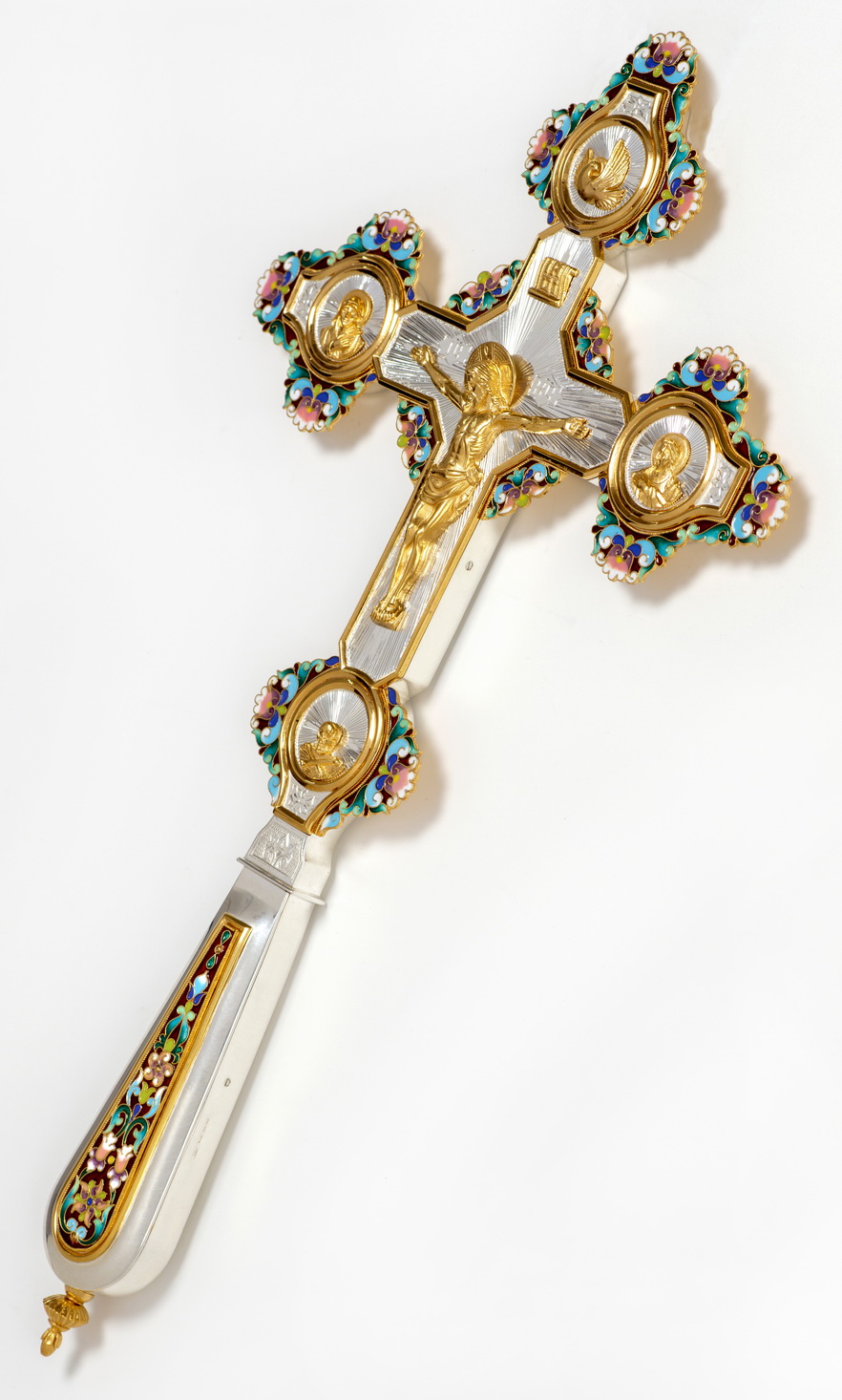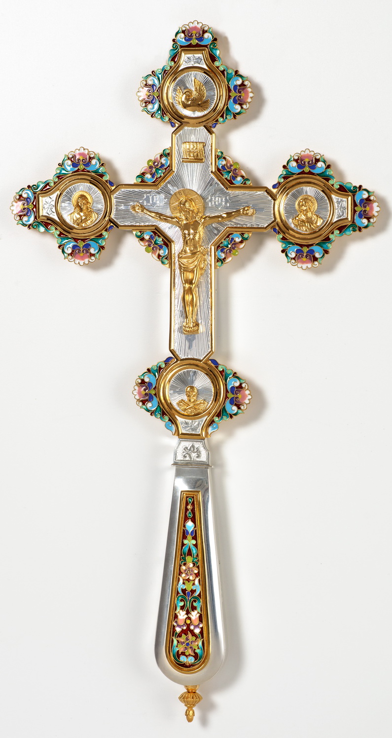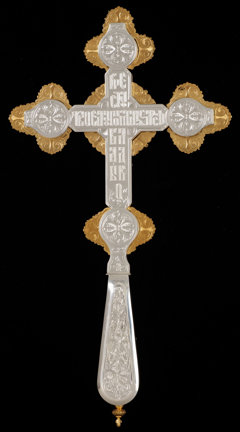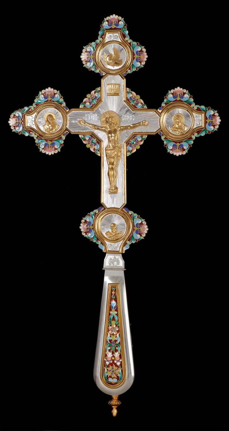 Крест напрестольный №1 рант, литье, филигрань, эмаль, гравировка / золочение / серебро (УИН)