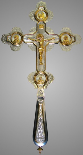 Крест напрестольный №1 рант, литье, гравировка / золочение / серебро (УИН)