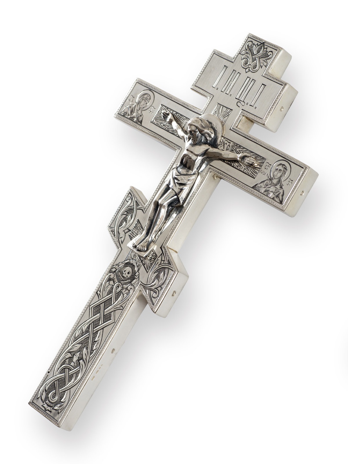 Крест напрестольный №16 литьевое распятие, гравировка серебро (УИН)