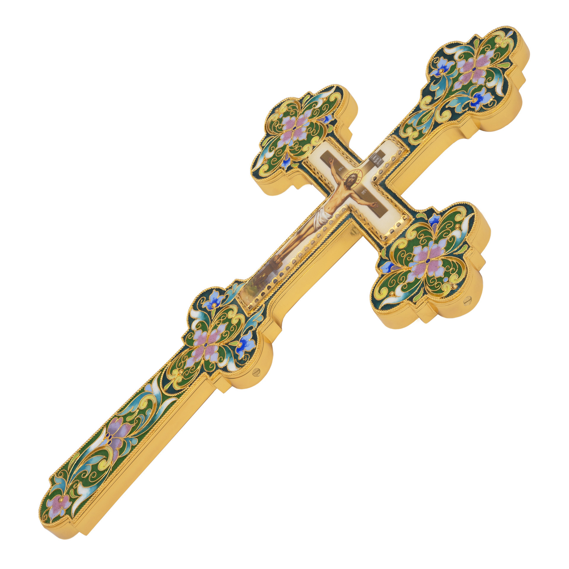 Крест напрестольный №18 деколь, филигрань, эмаль, лазерная гравировка / золочение