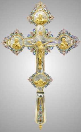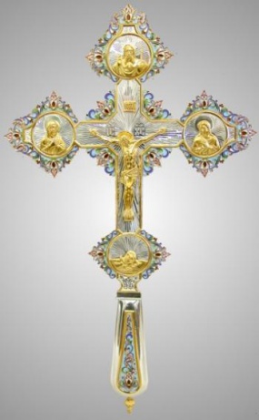 Крест напрестольный №2 рант, литье, филигрань, эмаль, роспись, гравировка серебро (УИН)