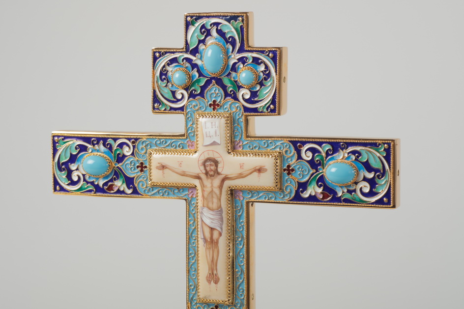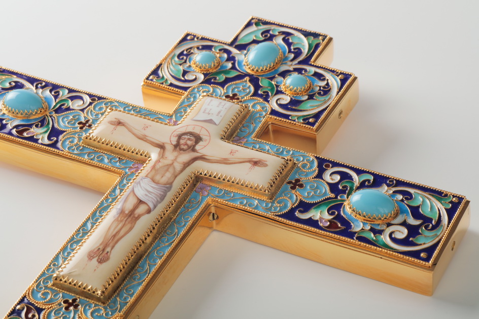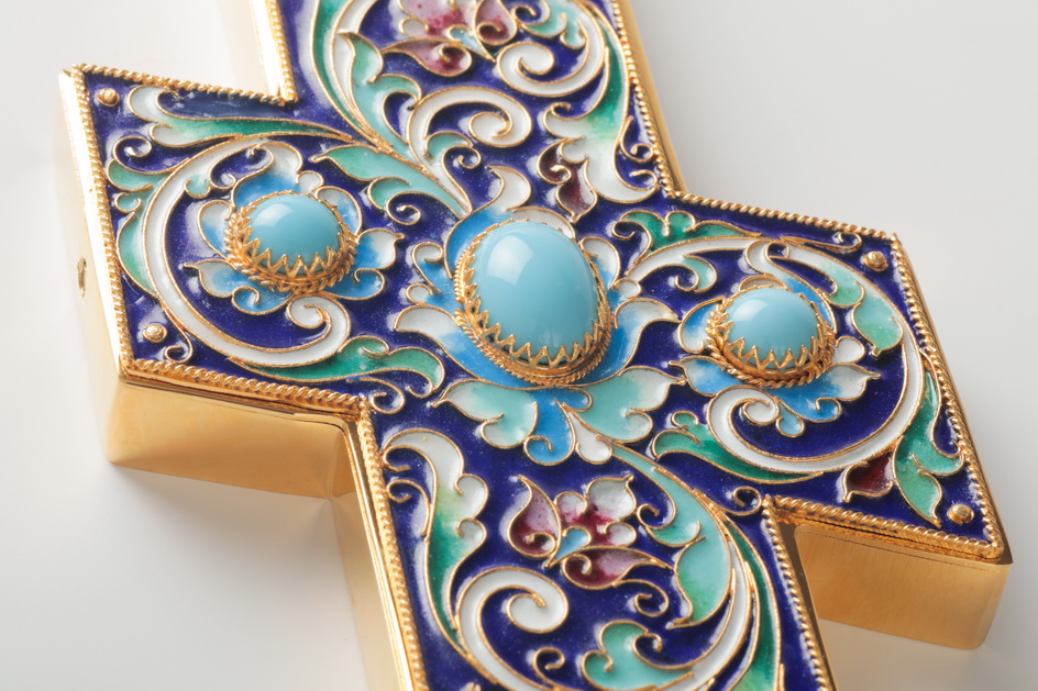 Крест напрестольный №3 финифть, филигрань, эмаль, хим.гравировка / золочение