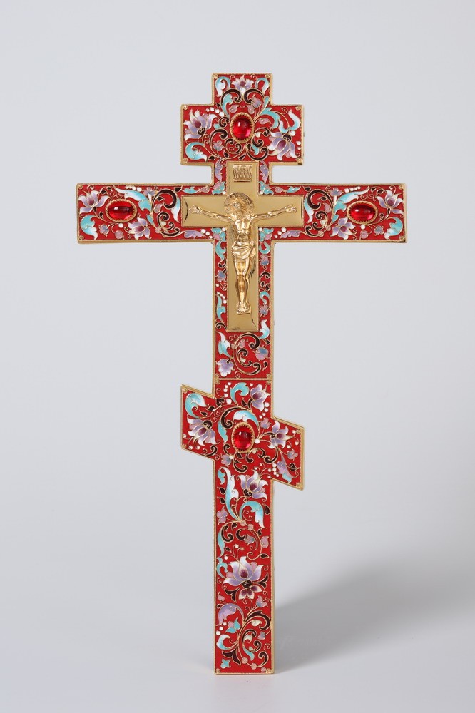 Крест напрестольный №3 литье, филигрань, эмаль, хим.гравировка / золочение