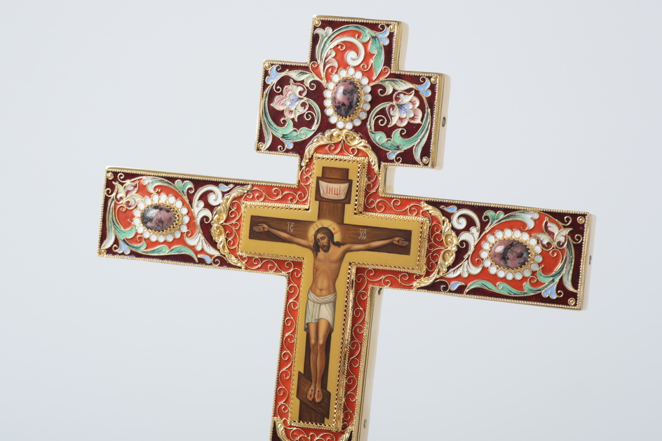 Крест напрестольный №3 живопись, филигрань, эмаль, роспись, хим.гравировка / золочение