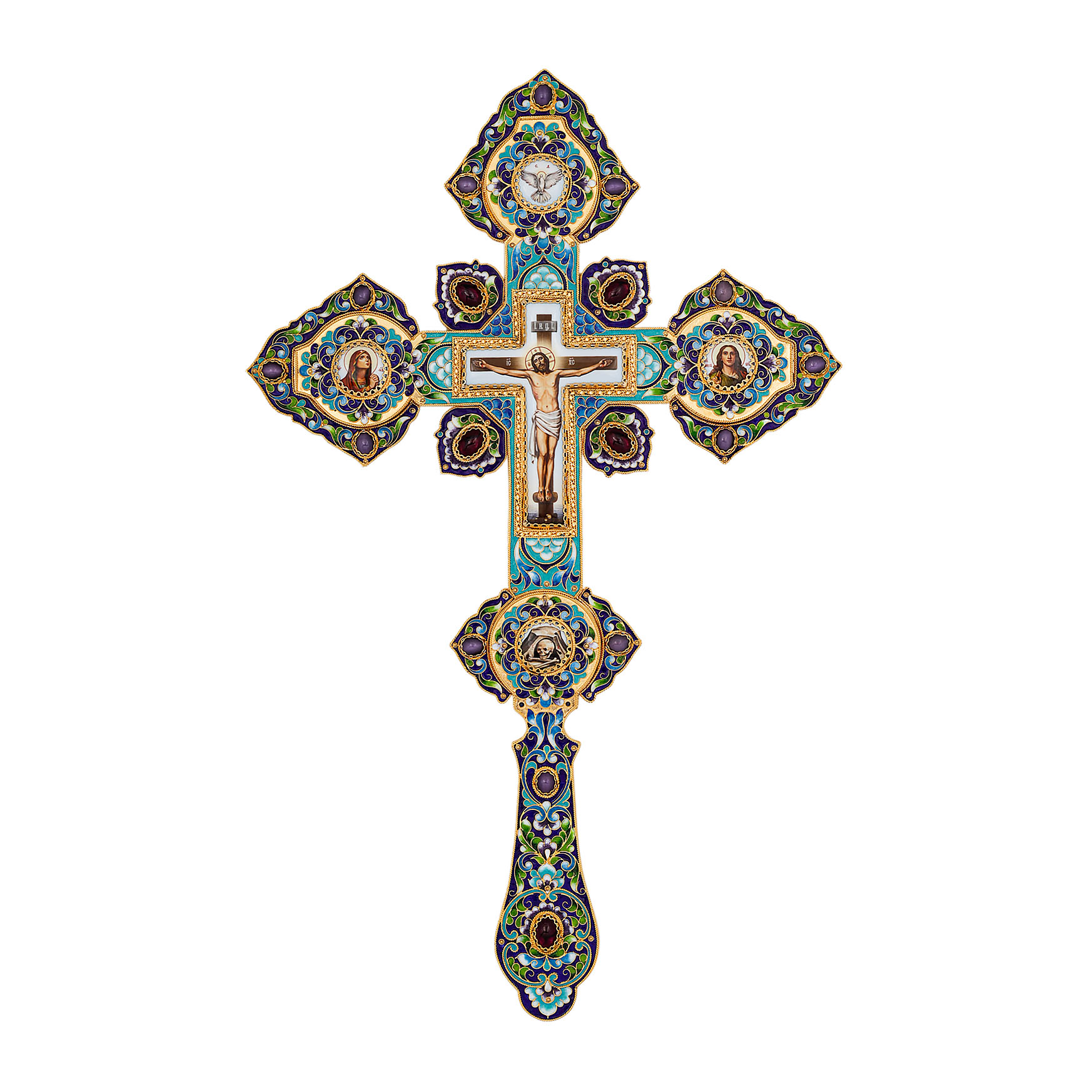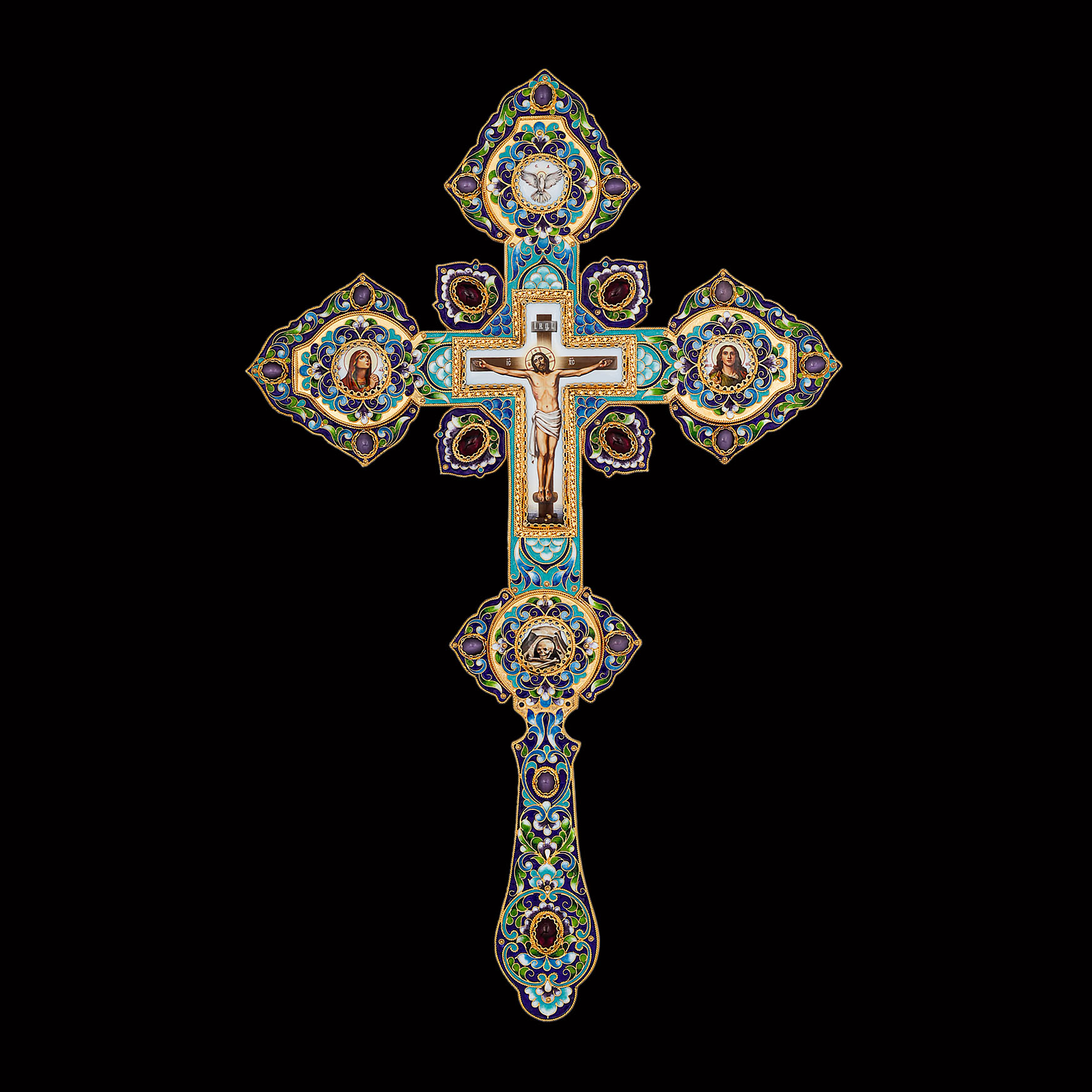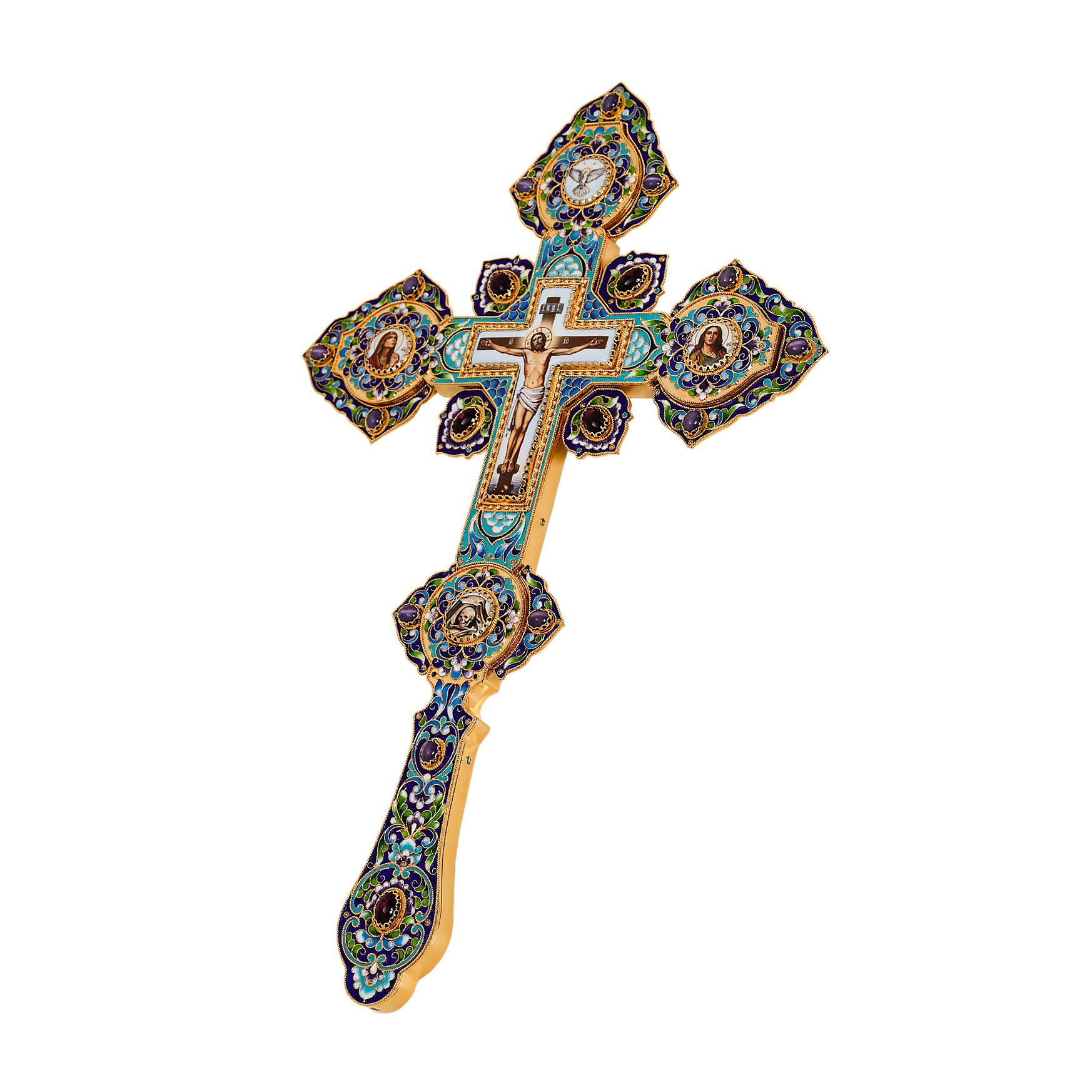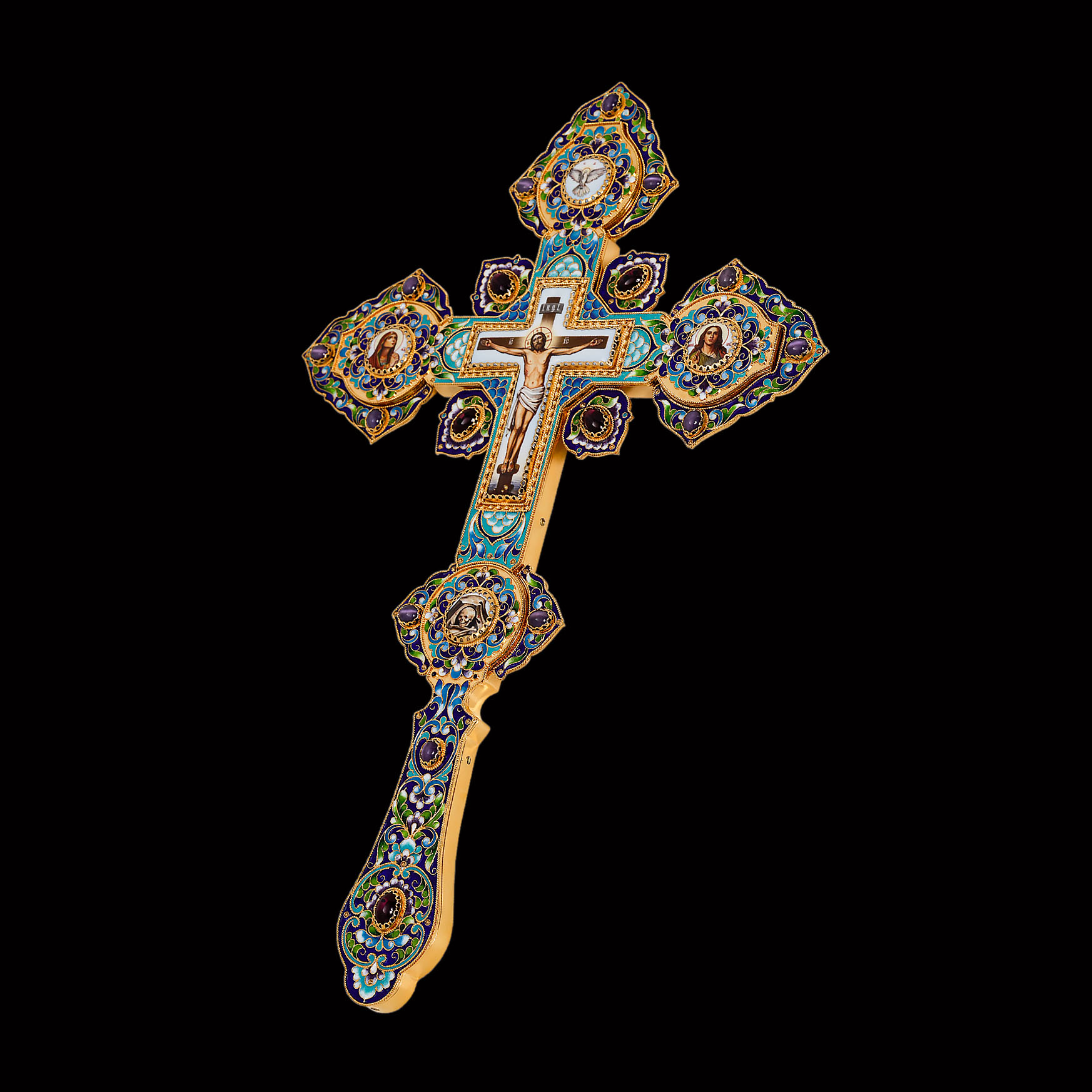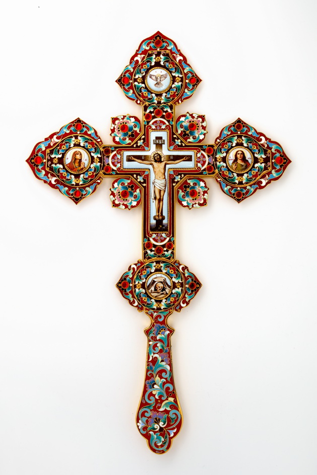 Крест напрестольный №4 5-деколей, филигрань, эмаль, хим.гравировка / золочение
