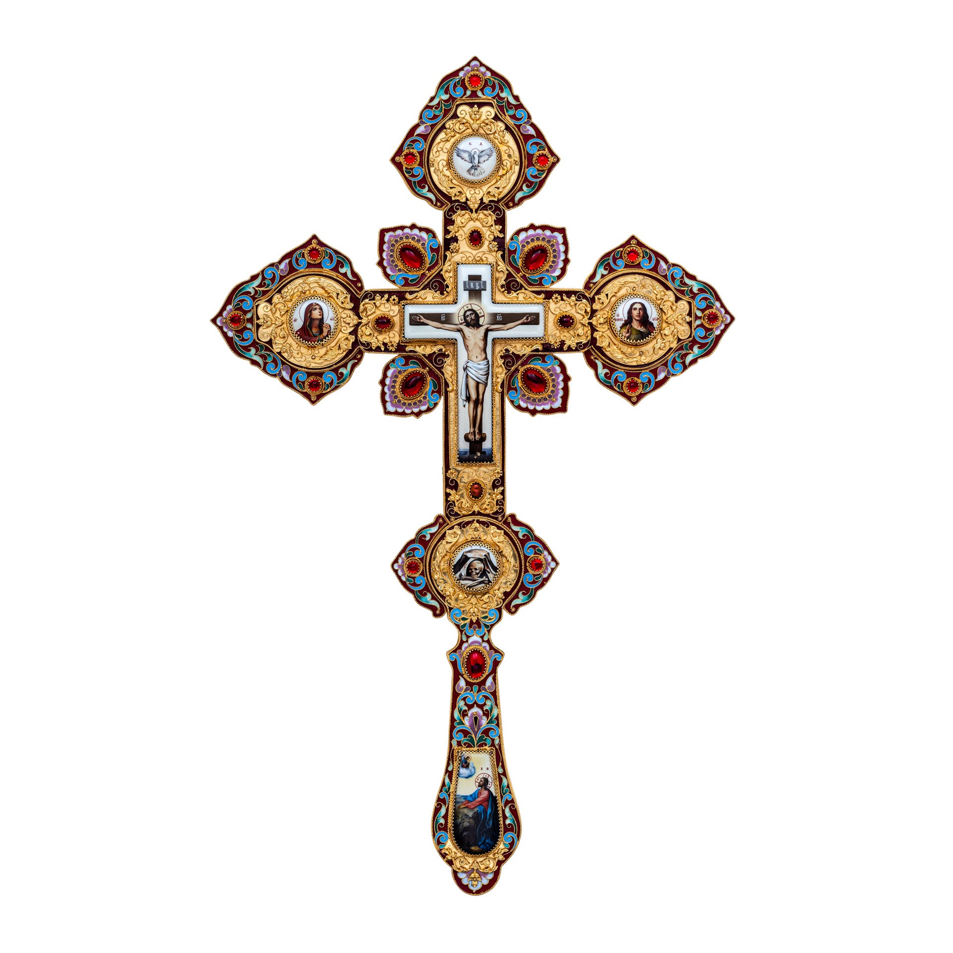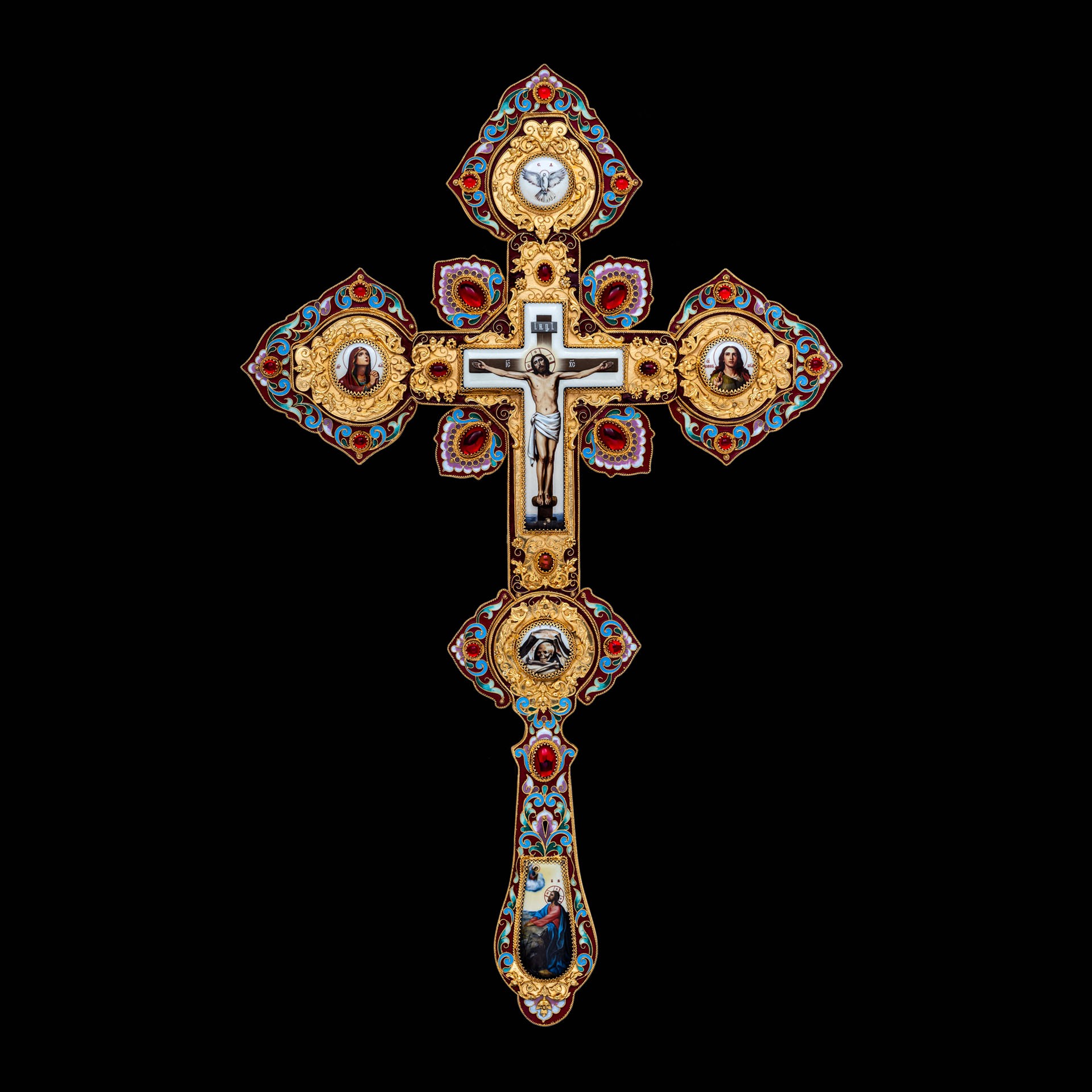 Крест напрестольный №4 6-деколей, филигрань, эмаль, хим.гравировка / золочение