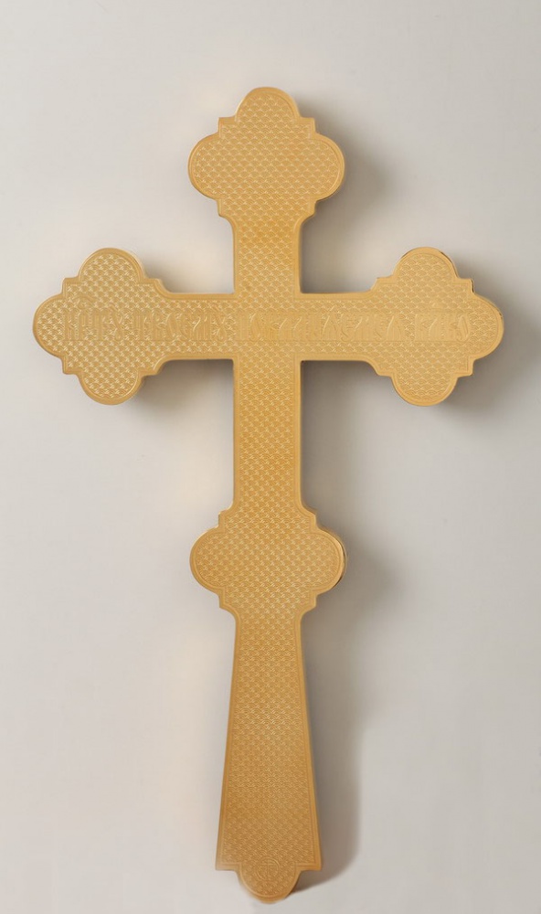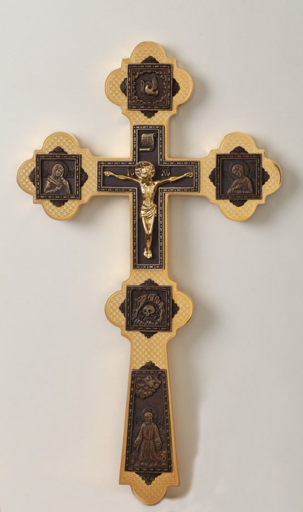 Крест напрестольный №6-17 сложный малый с литыми накладками золочение патинирование