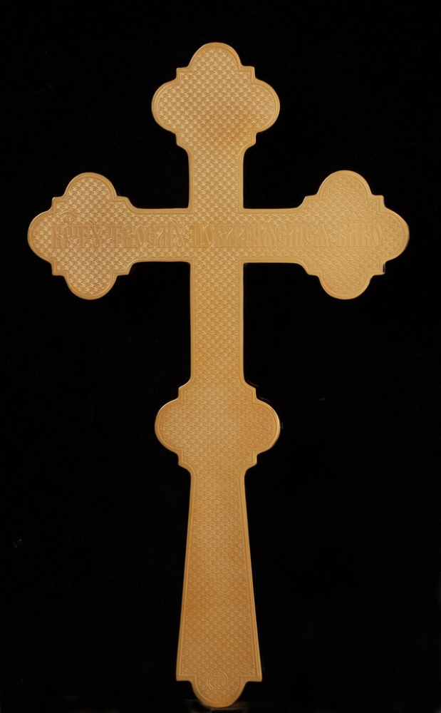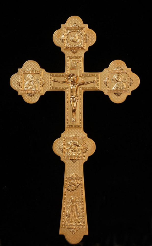 Крест напрестольный №6-20 сложный малый с литыми накладками золочение