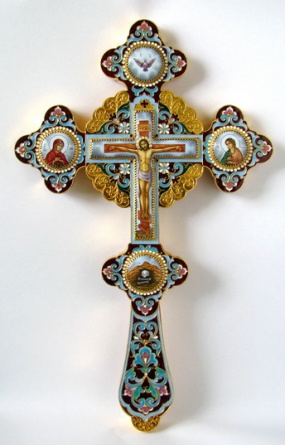 Крест напрестольный фигурный 5-финифтей, эмаль / золочение