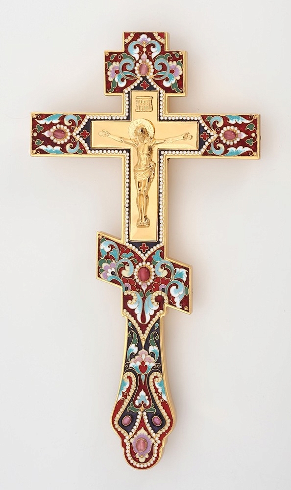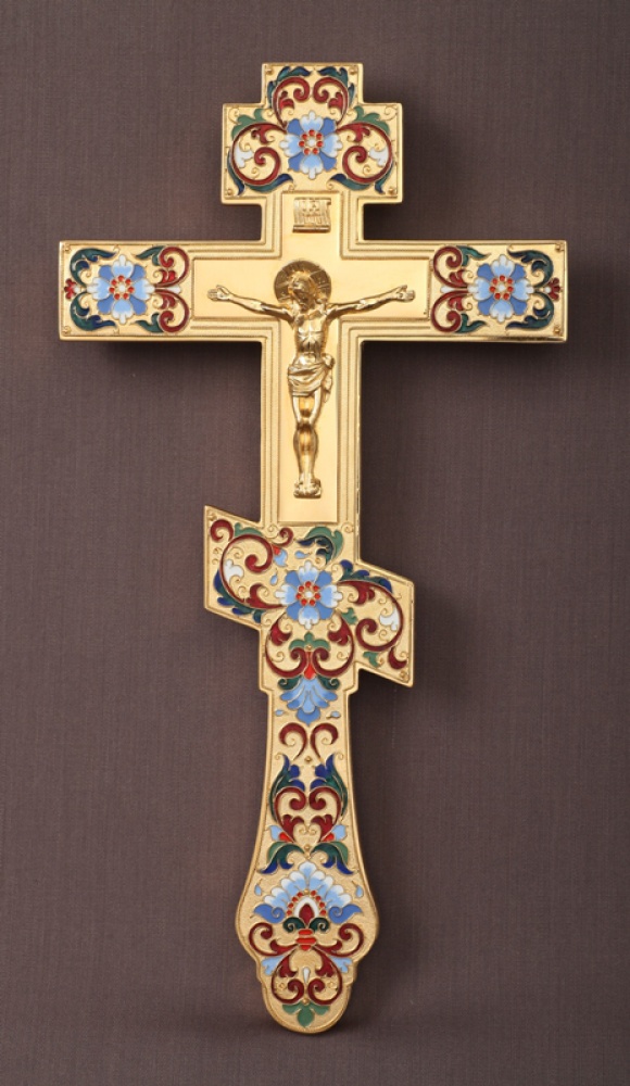 Крест напрестольный филигрань, эмаль, литьевое распятие / золочение