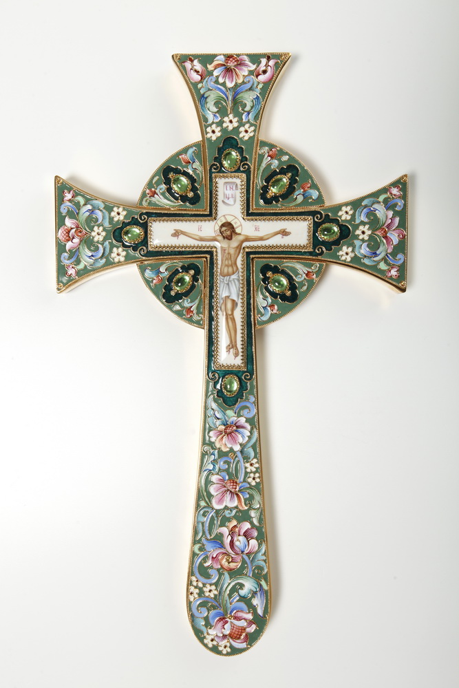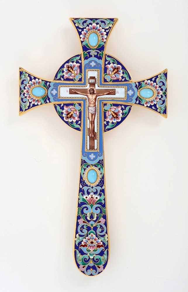 Крест напрестольный мальтийский финифть, роспись / золочение