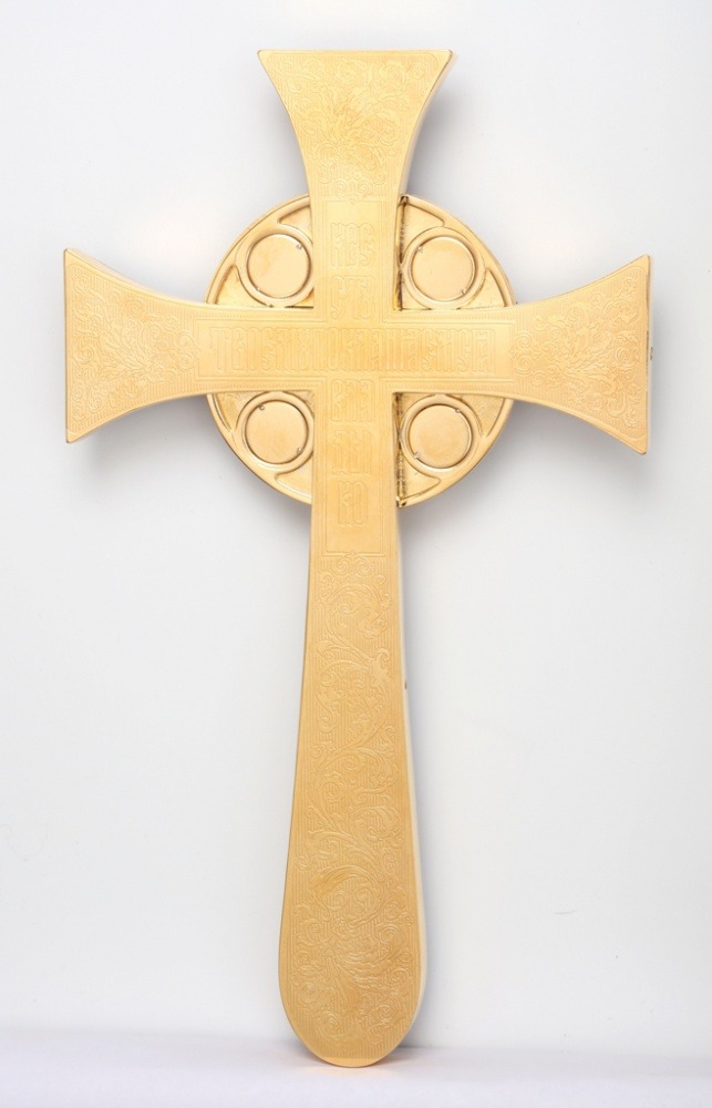 Крест напрестольный мальтийский литьевое распятие, роспись / золочение