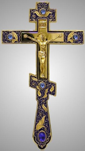 Крест напрестольный малый литьевое распятие, эмаль / золочение