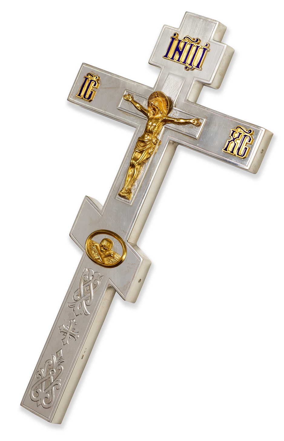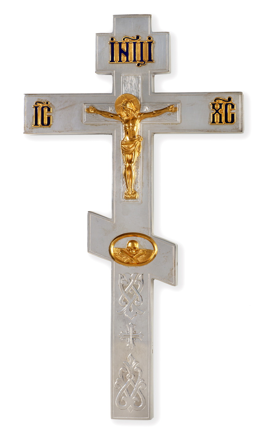Крест напрестольный прямой литье, эмаль, гравировка / золочение / серебро (УИН)