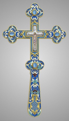 Крест напрестольный водосвятный финифть, филигрань, эмаль серебро (УИН)