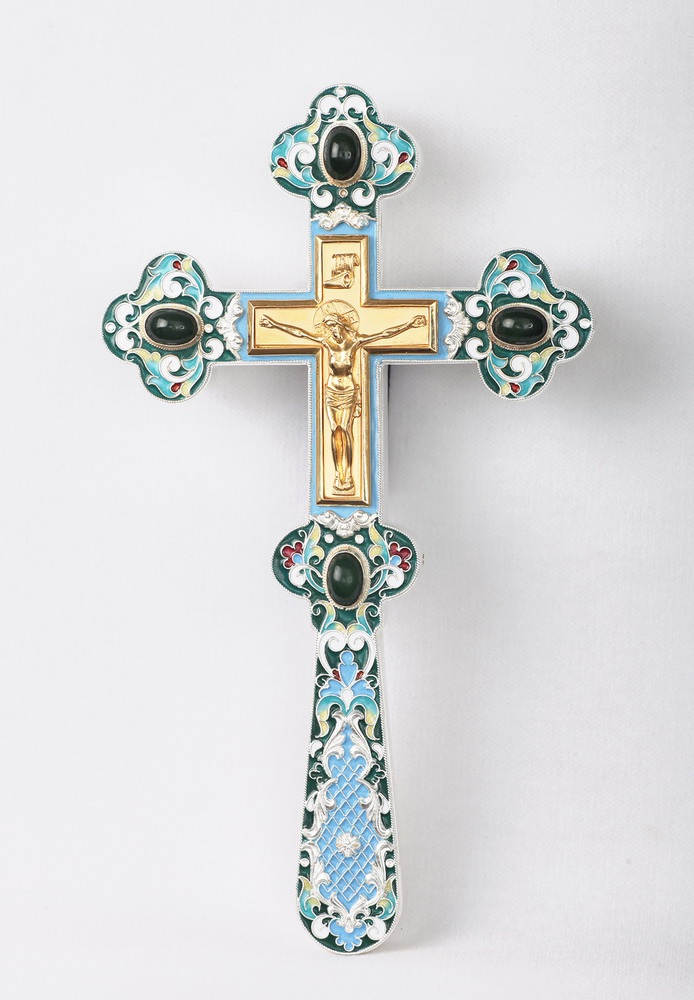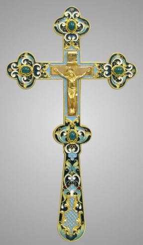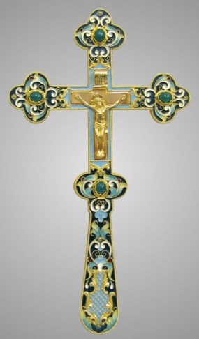 Крест напрестольный водосвятный литье, филигрань, эмаль / золочение / серебро (УИН)