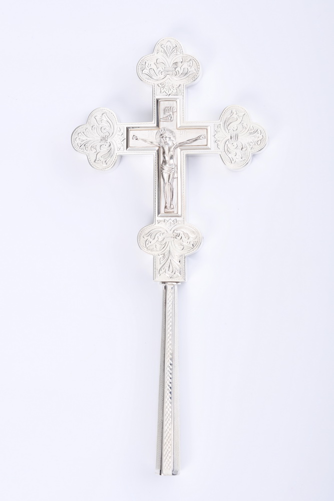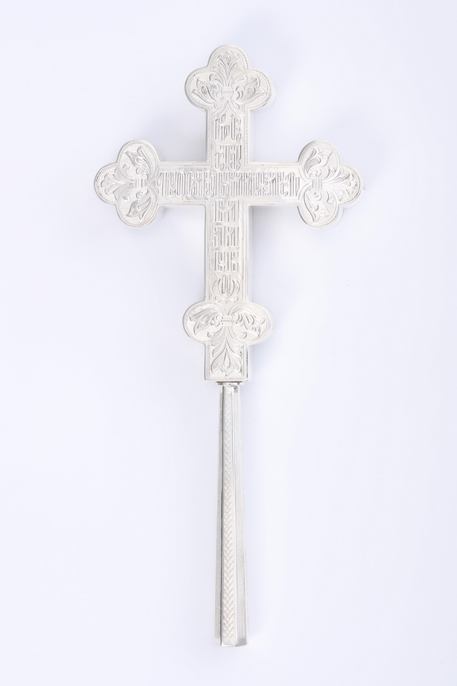 Крест напрестольный водосвятный на ручке литье, гравировка серебро (УИН)