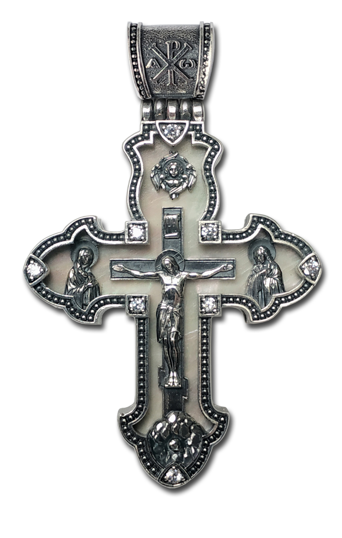 Крест нательный №34 / Фианиты серебро перламутр (УИН)