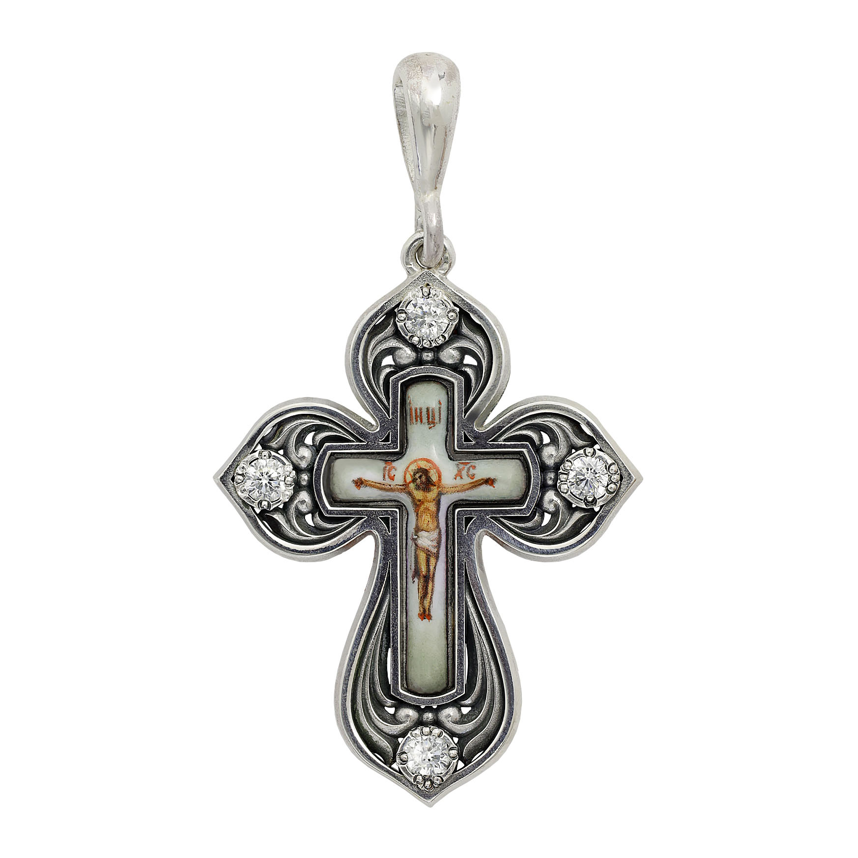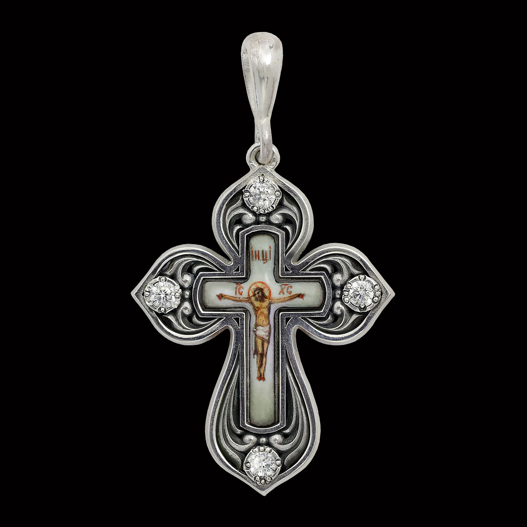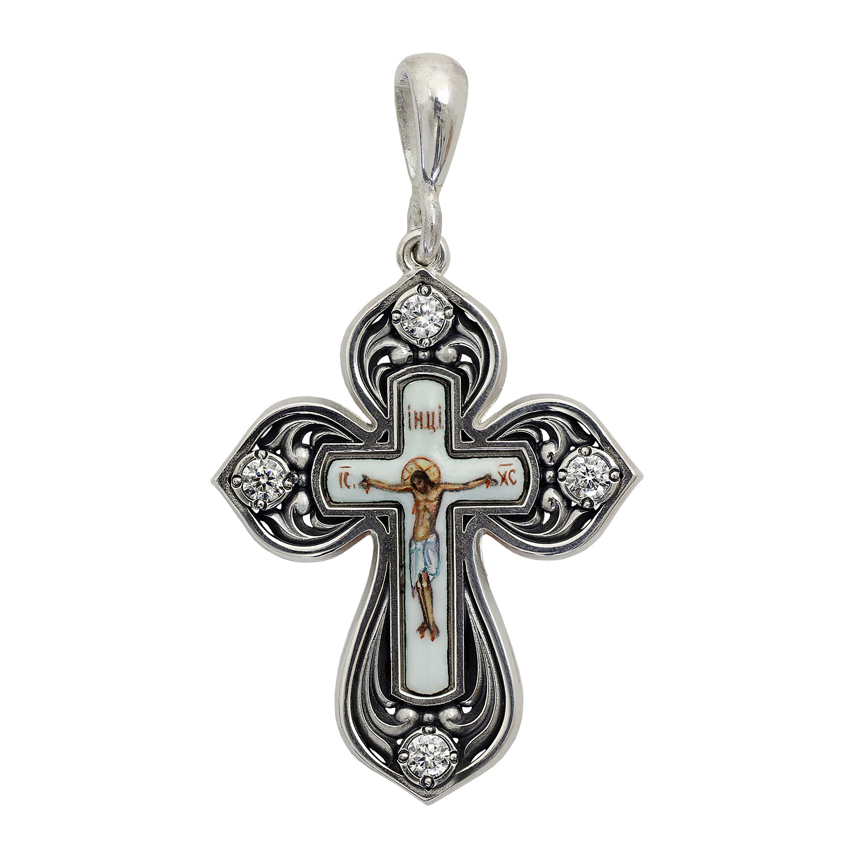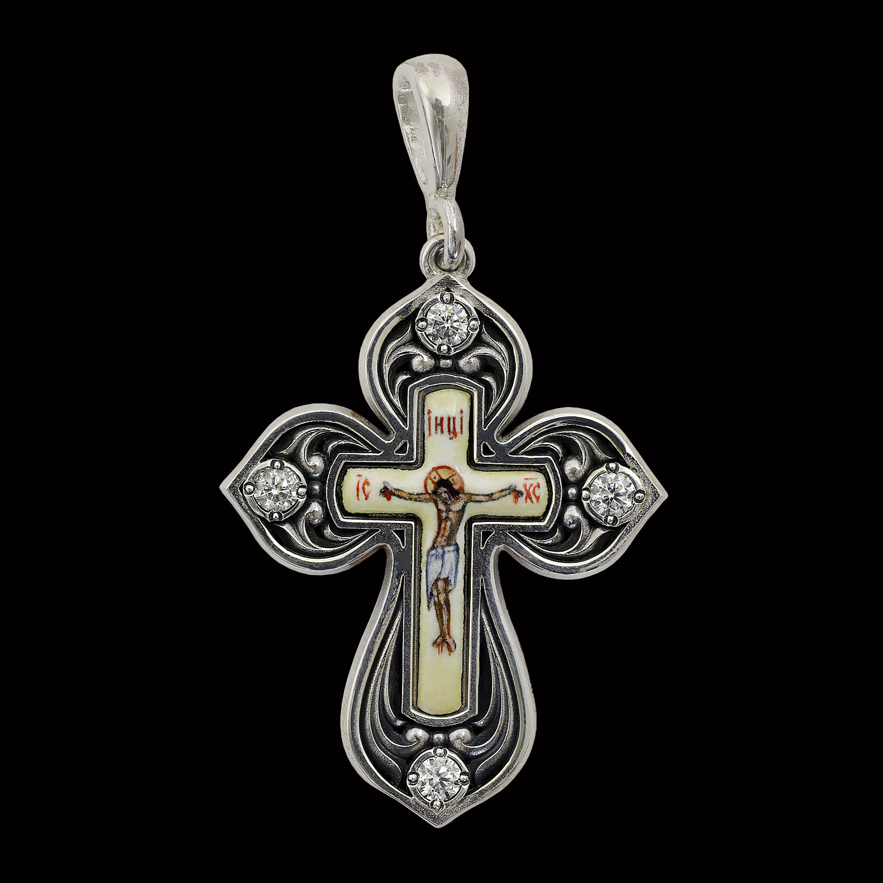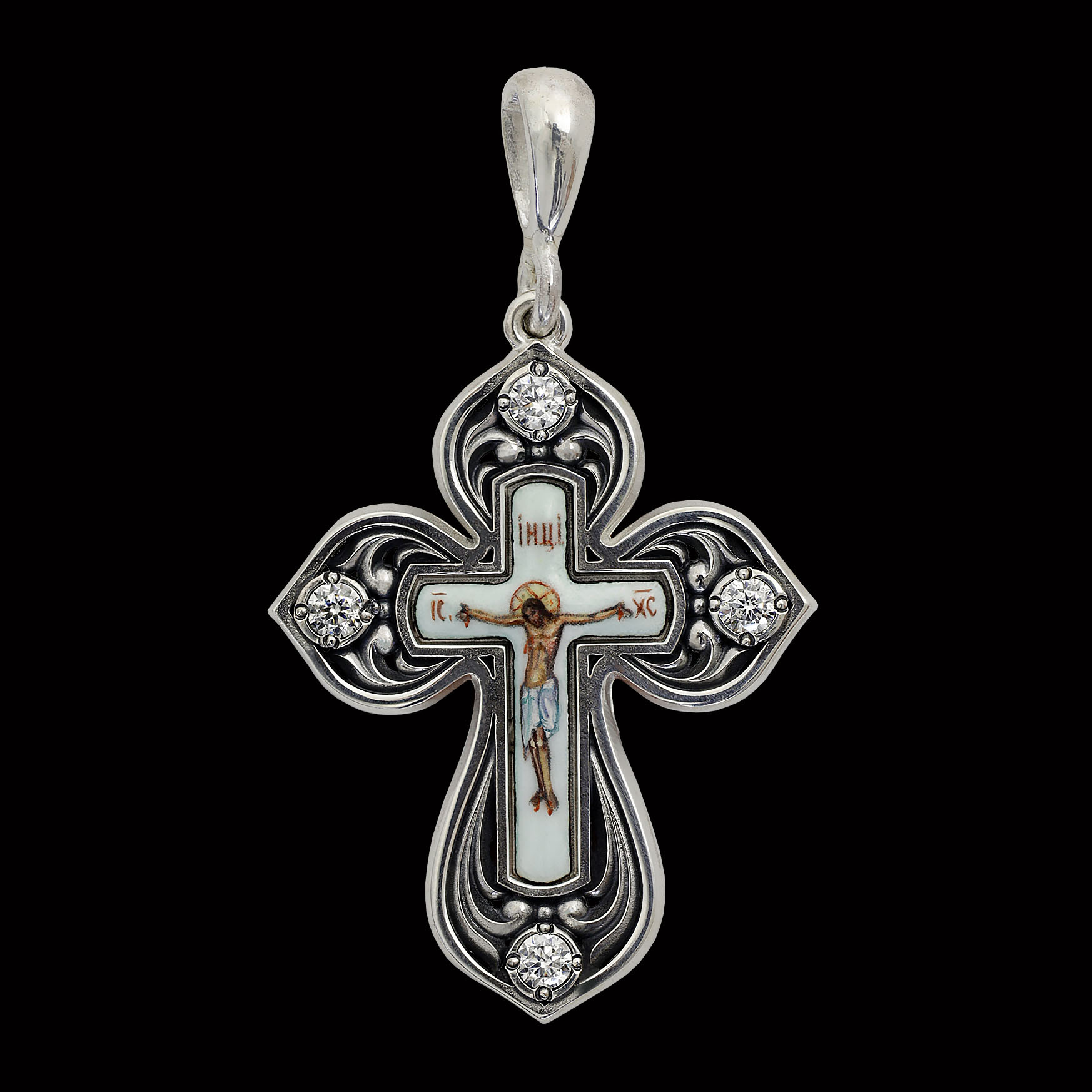 Крест нательный №64 / Фианиты деколь серебро (УИН)