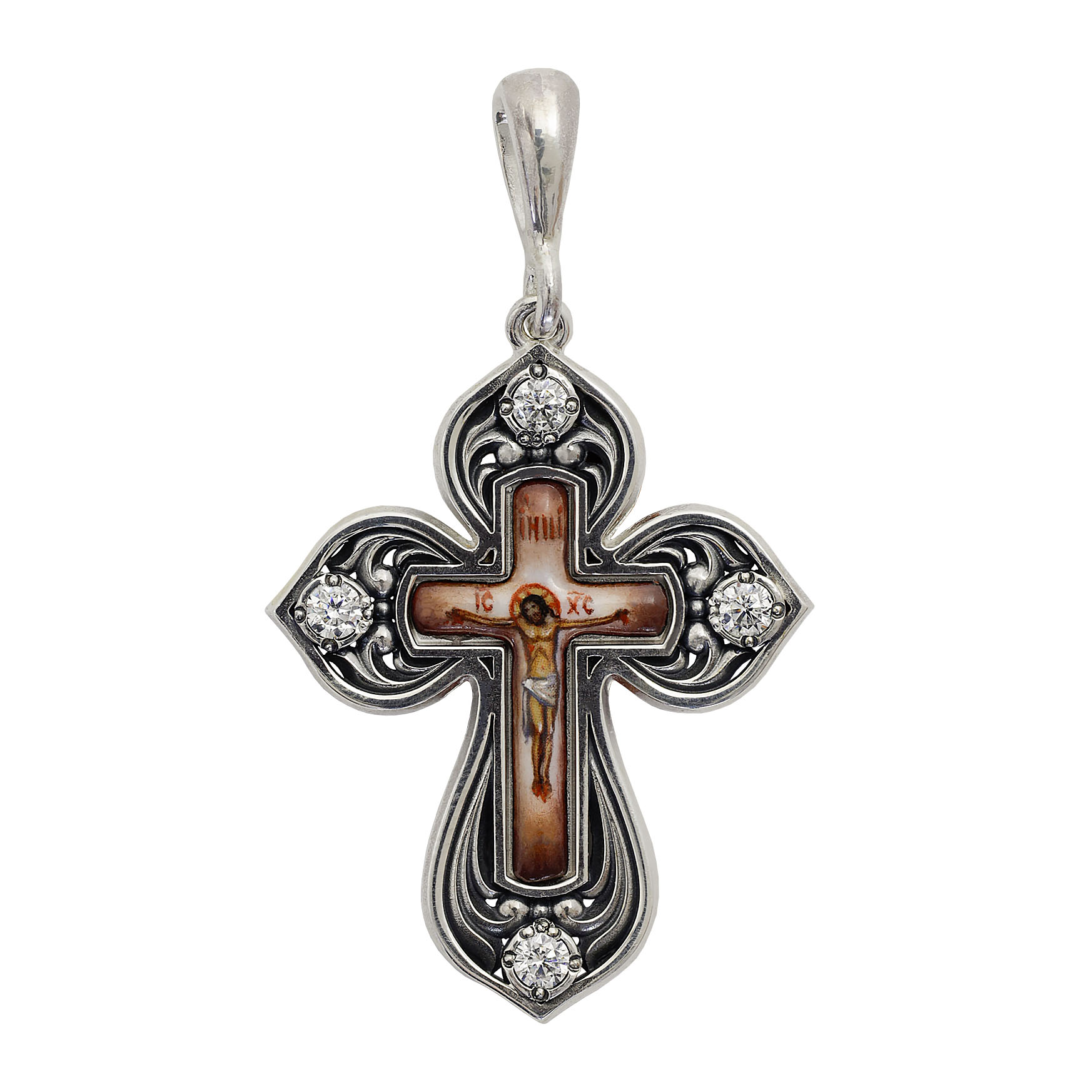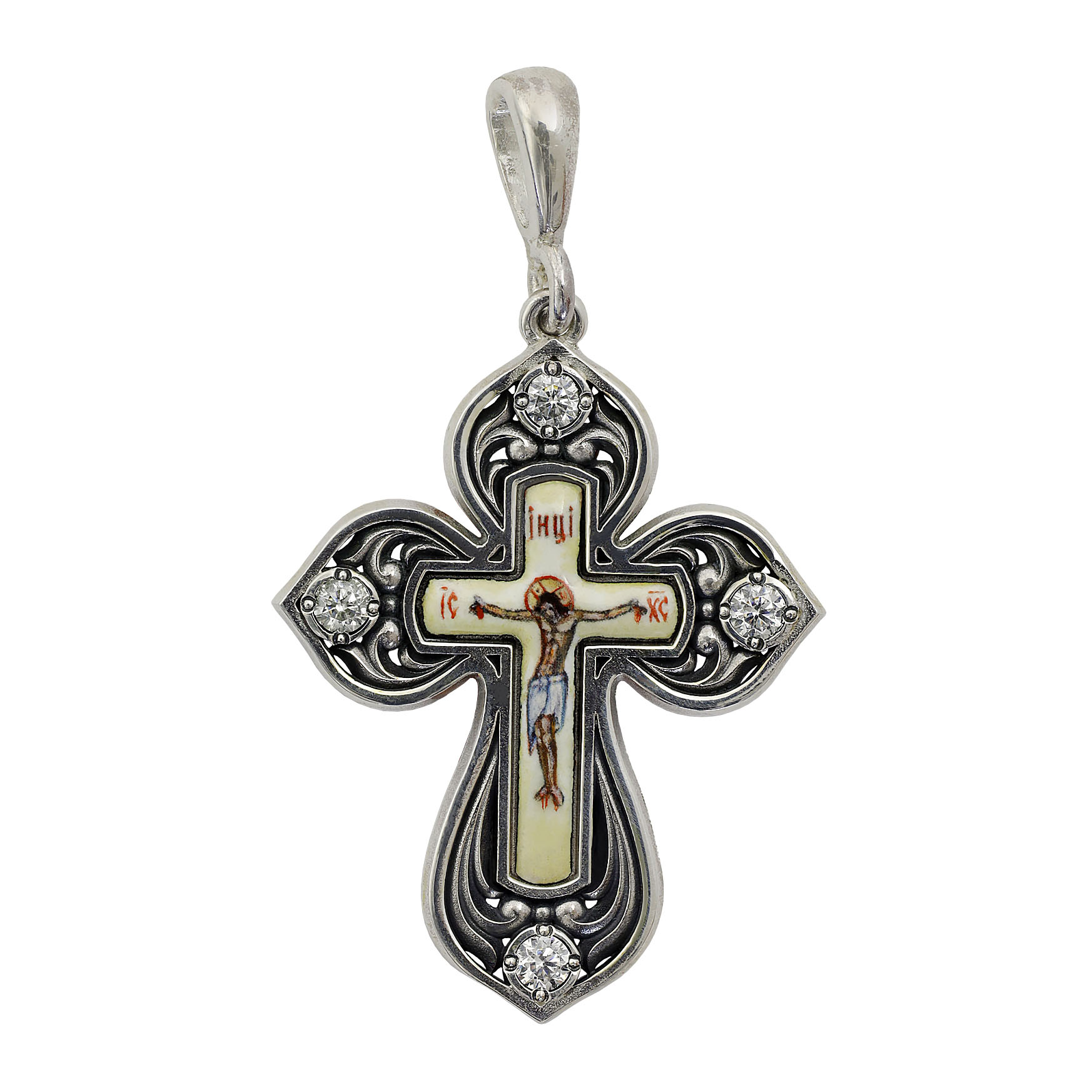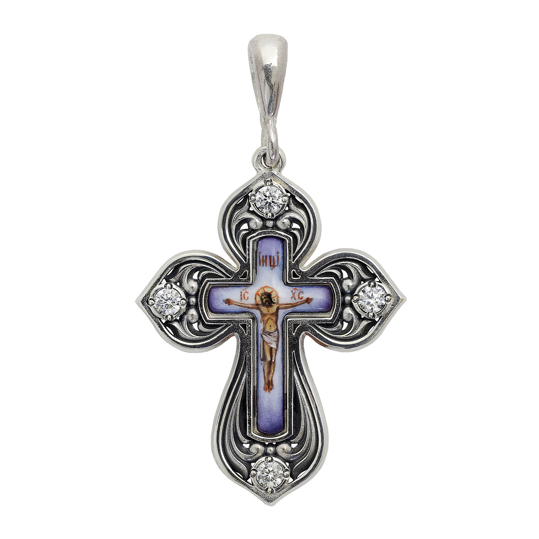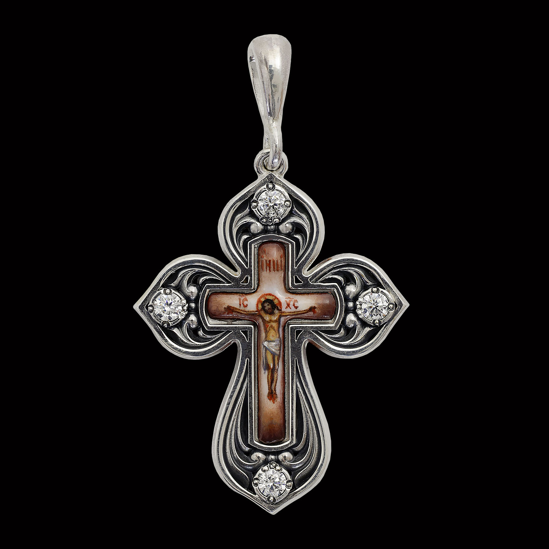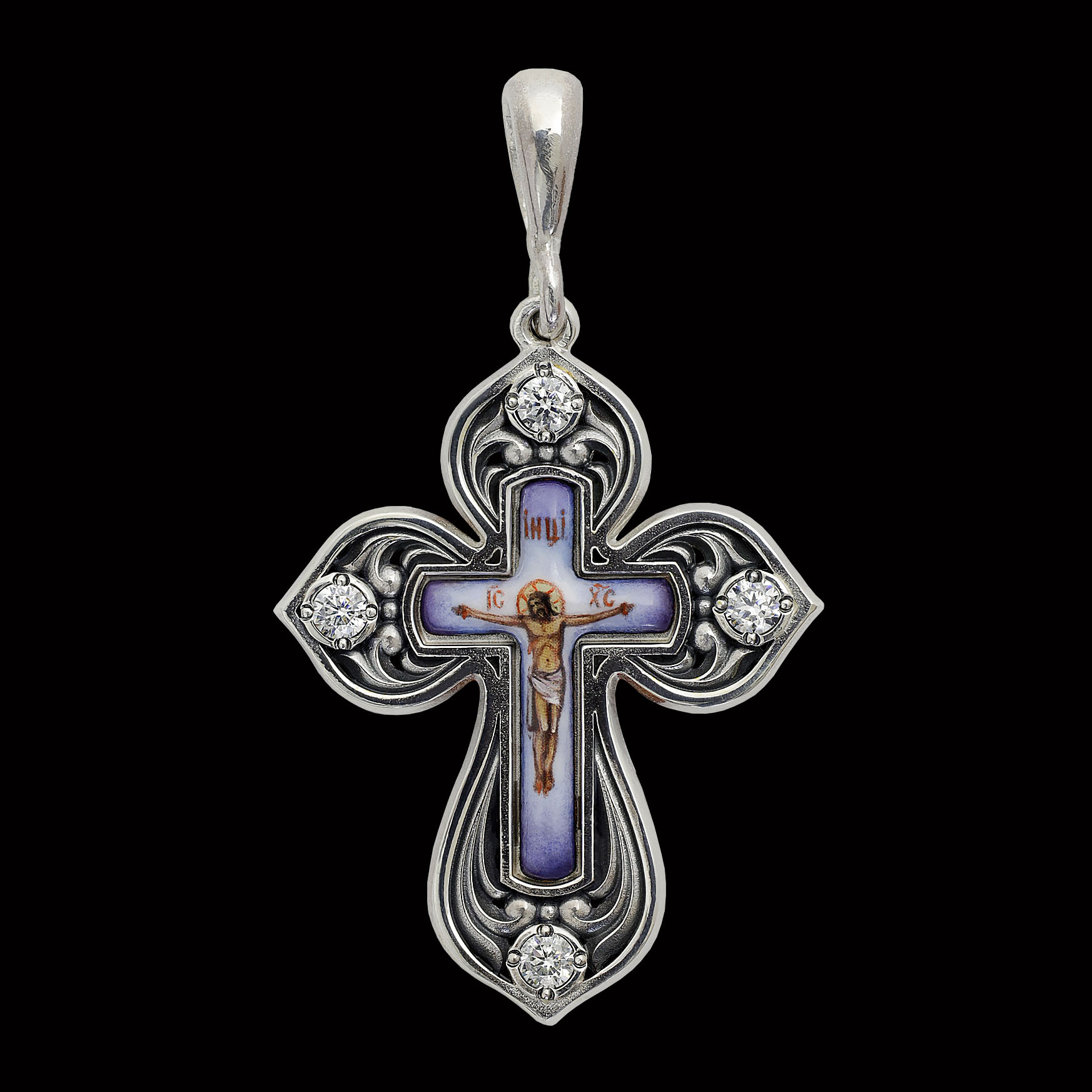 Крест нательный №64 / Фианиты деколь серебро (УИН)
