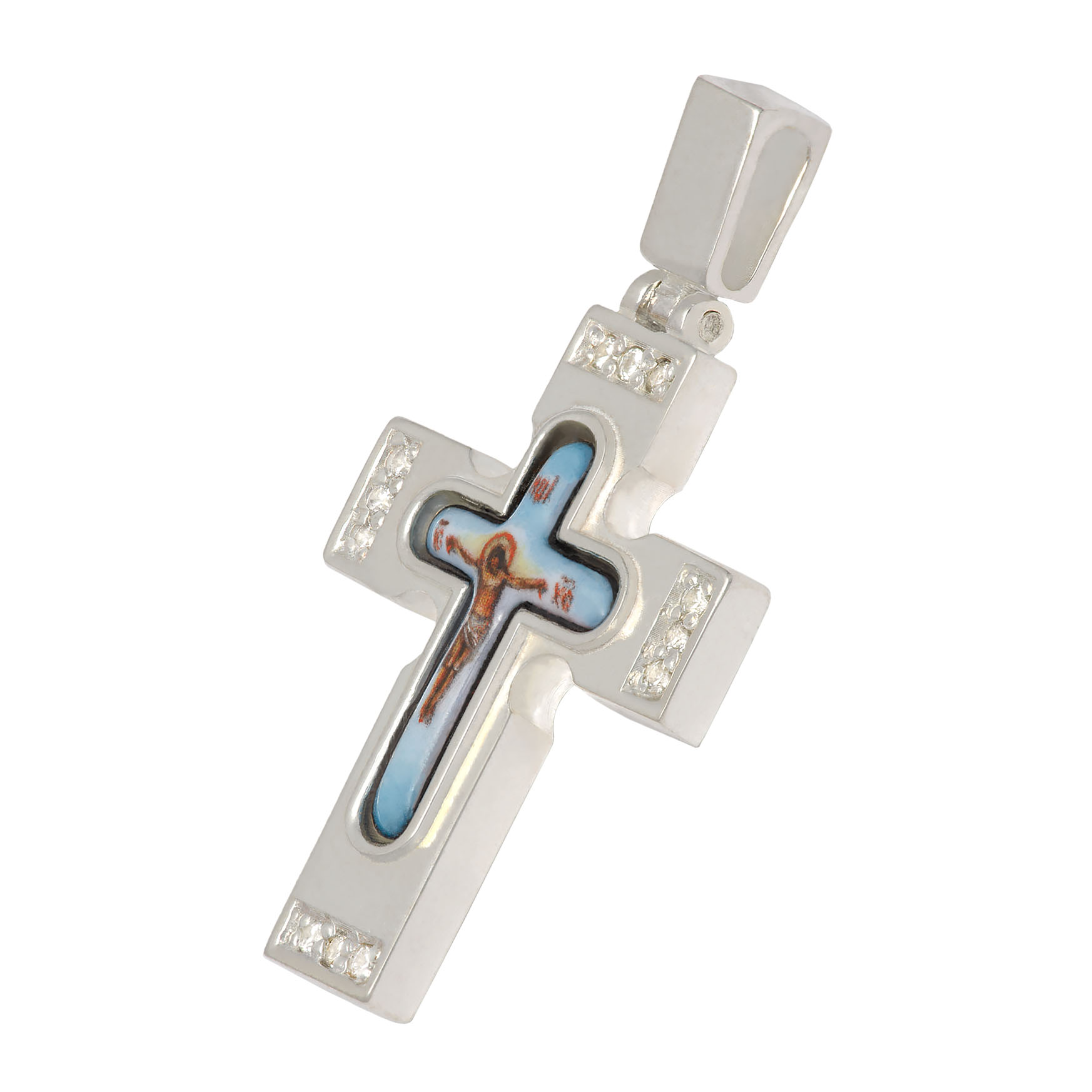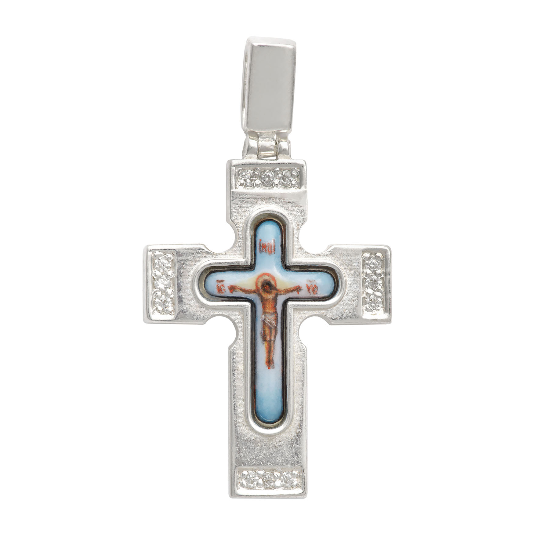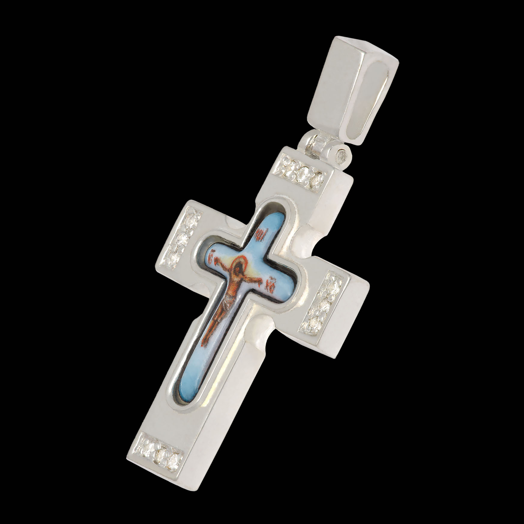 Крест нательный №65 / Фианиты деколь серебро (УИН)