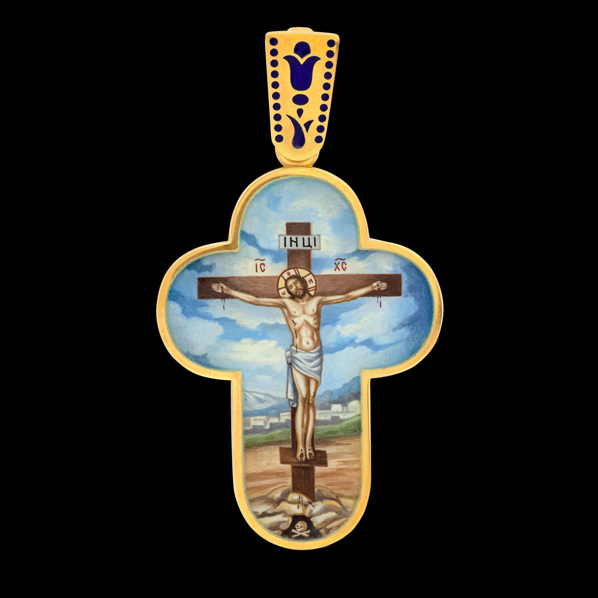 Крест нательный №66 серебро припильная эмаль / золочение / (УИН)