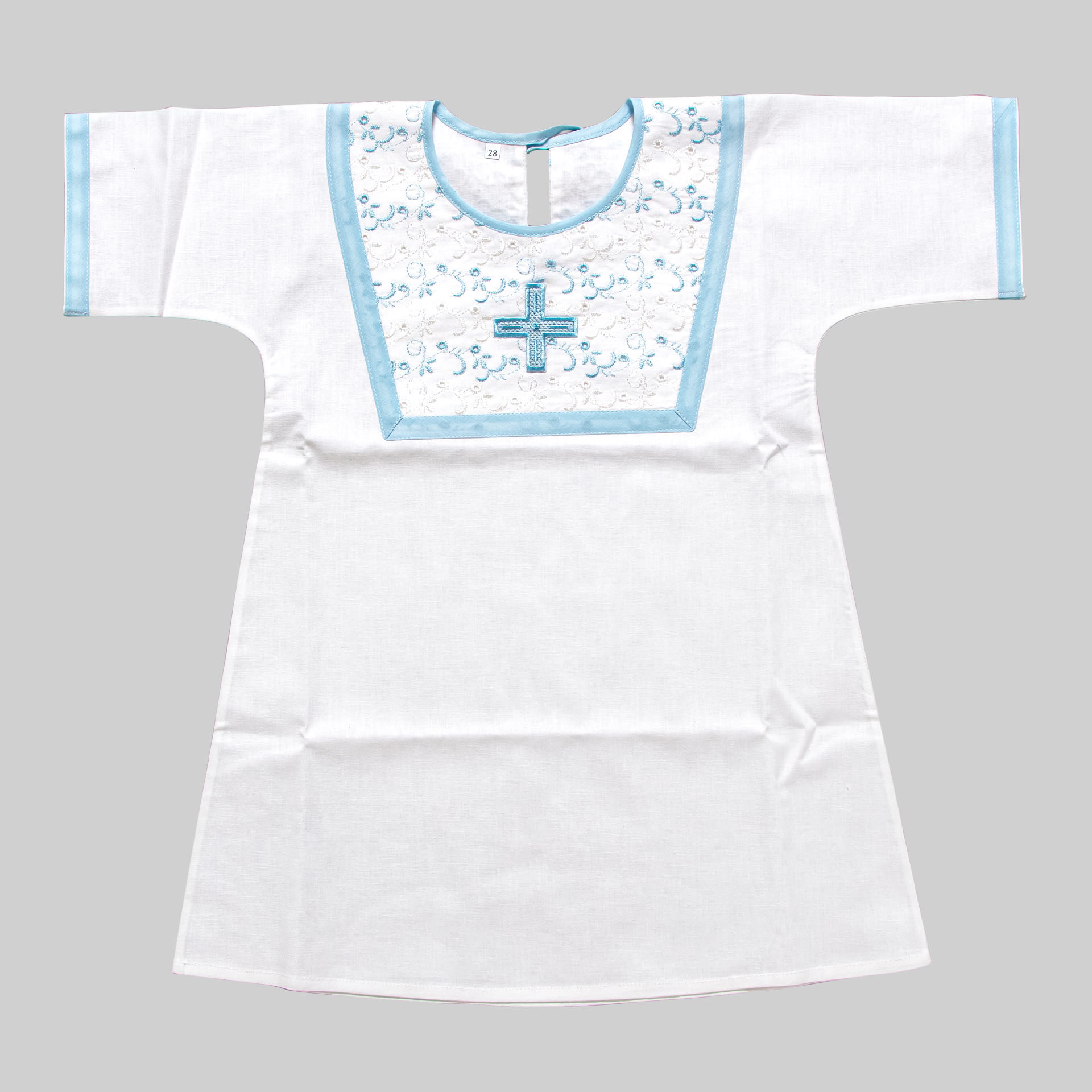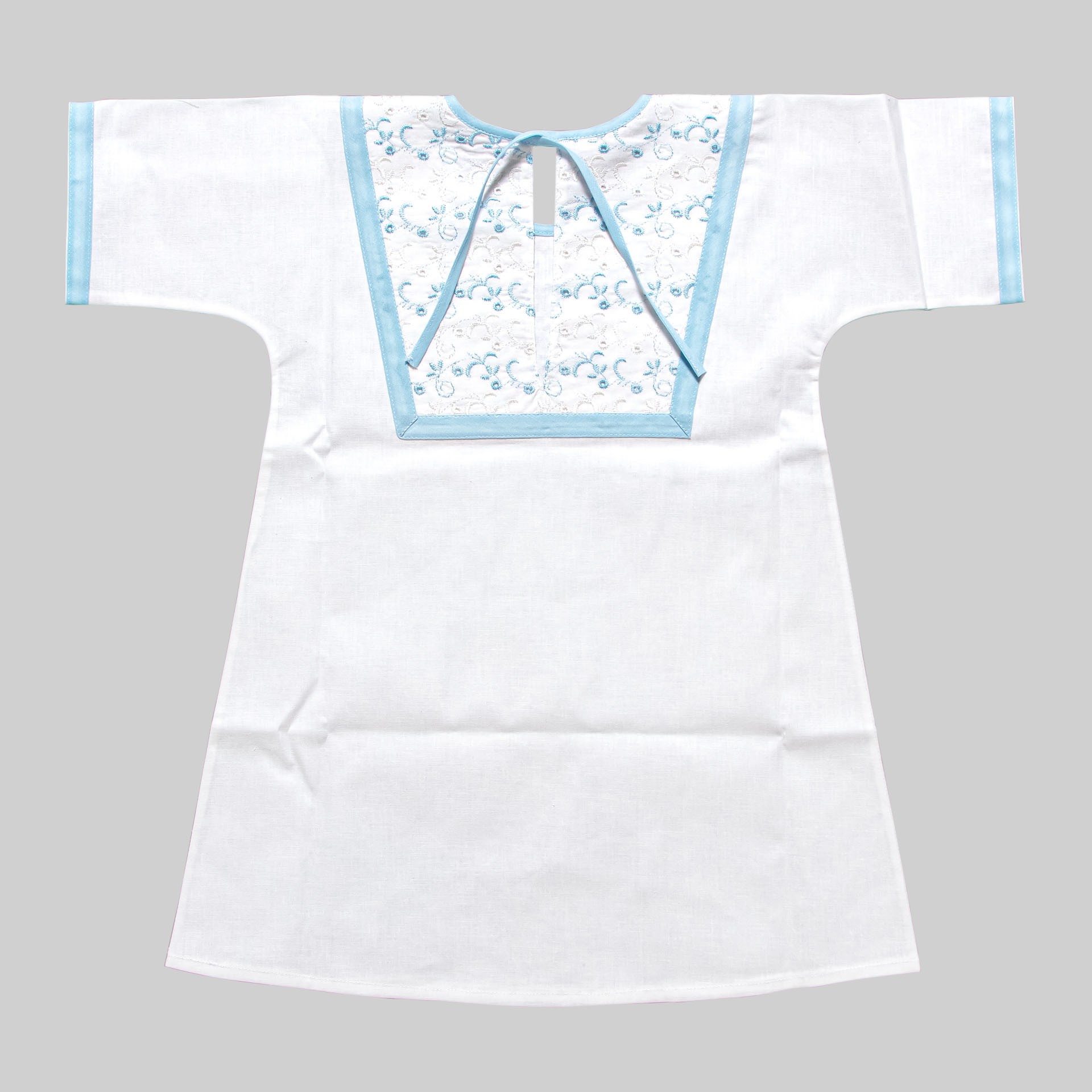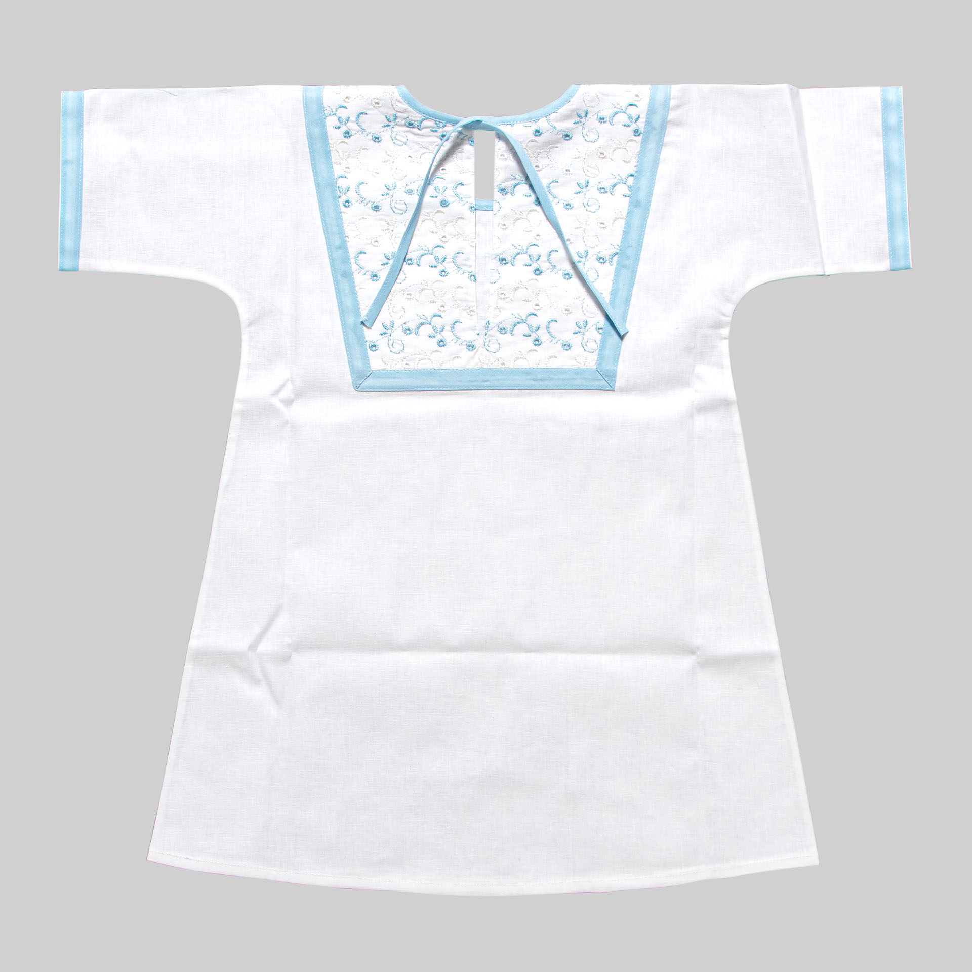 Крестильная рубашка для мальчика из натуральной хлопковой ткани с отделкой из натурального хлопкового кружева. Выпускается до 28 размера
