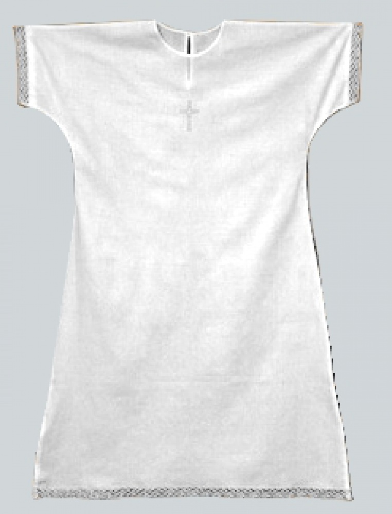 Крестильная рубашка женская изготовленная из однотонной натуральной ткани. Застежка - завязки на спинке изделия.