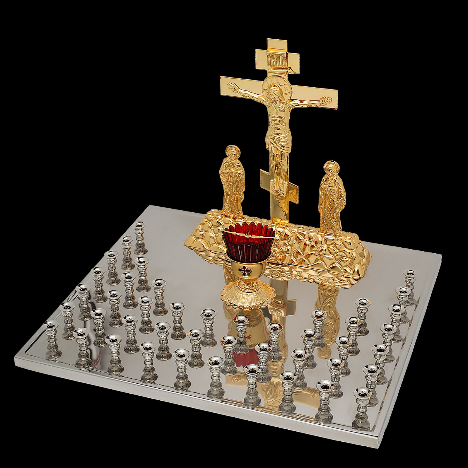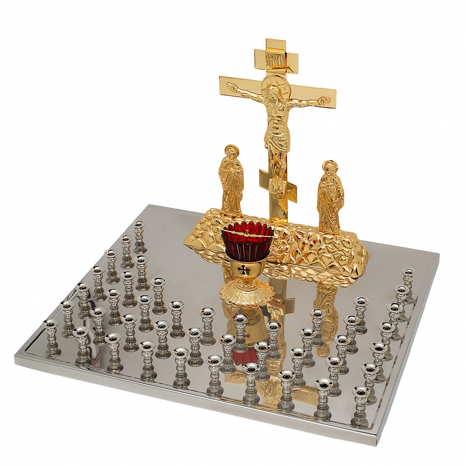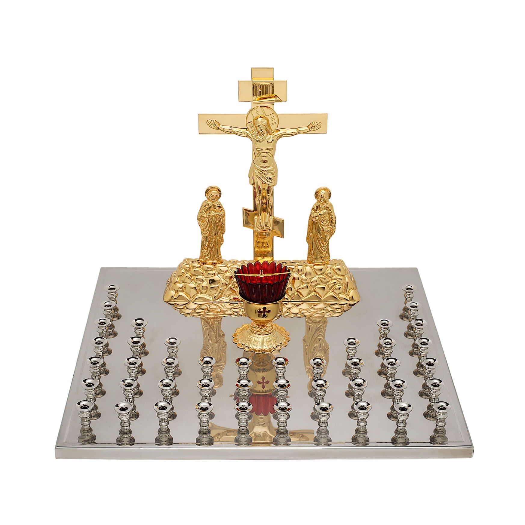 Крышка панихидного стола 44 свечи нержавеющая сталь частичное золочение