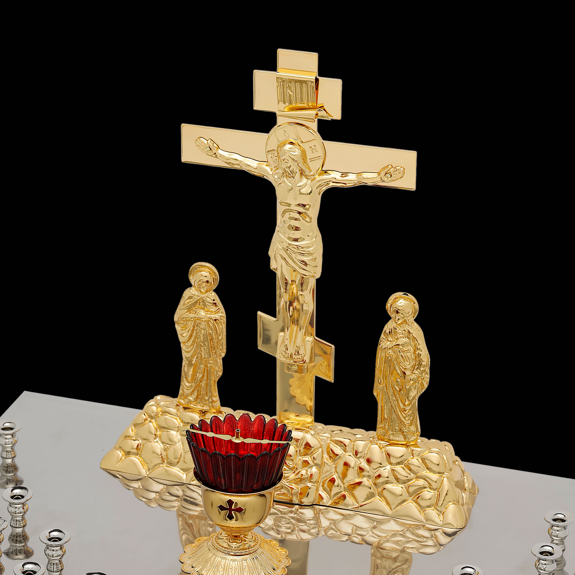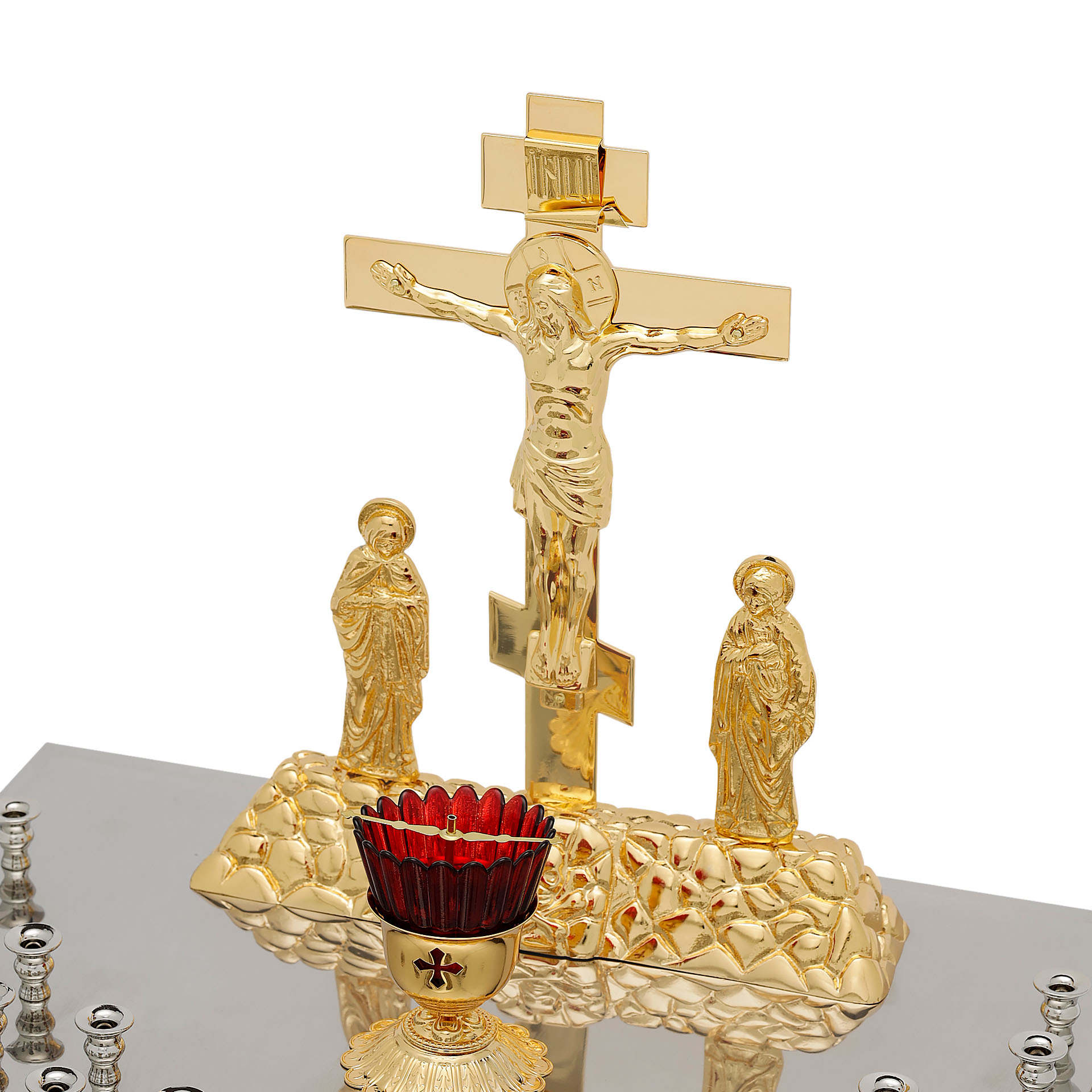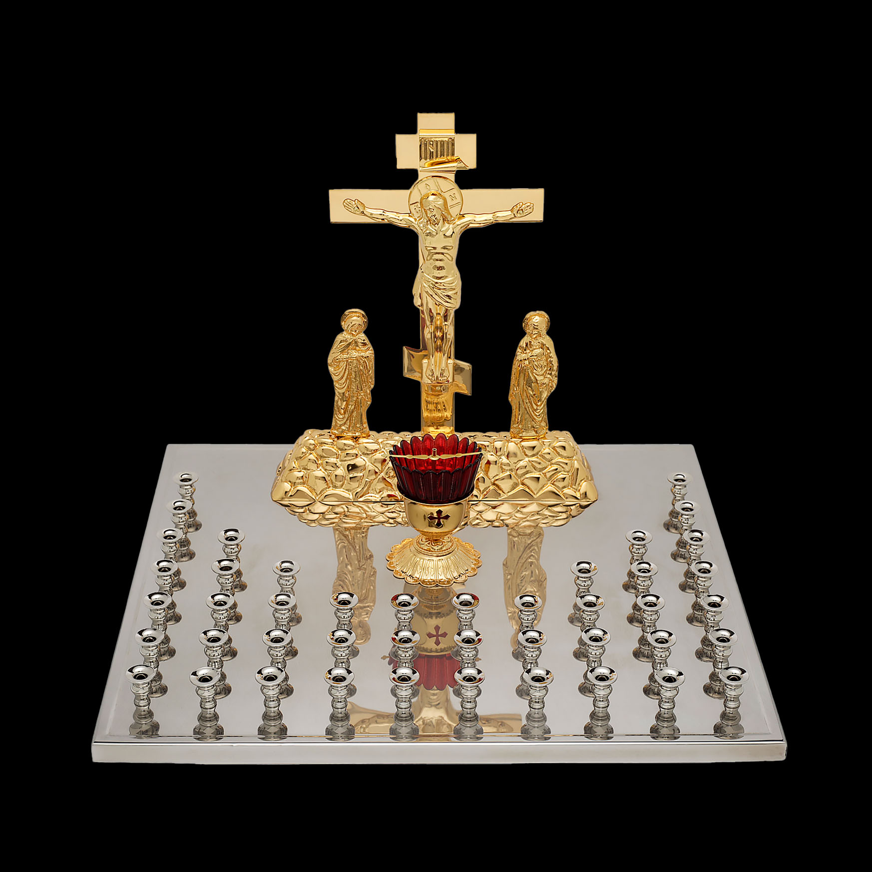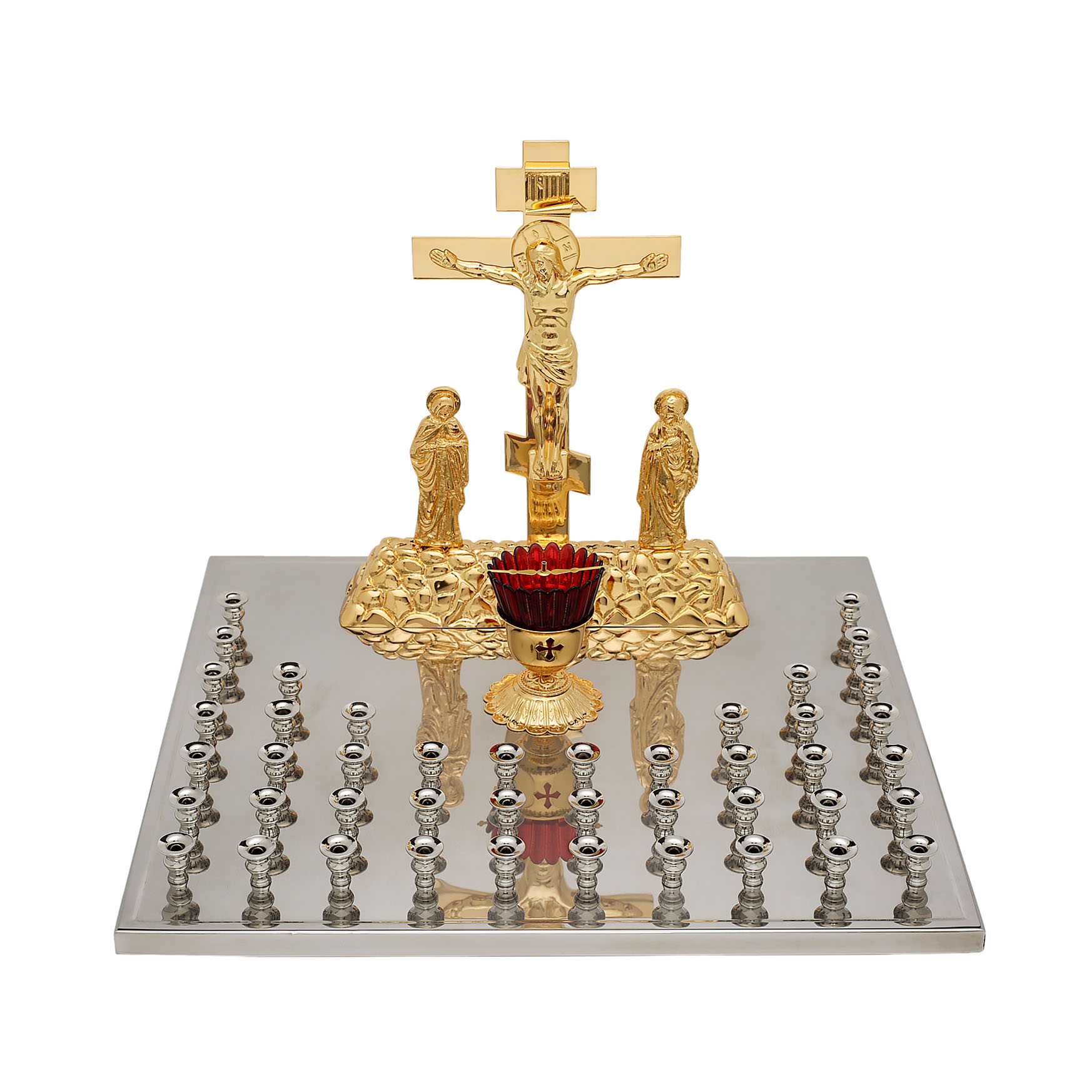 Крышка панихидного стола 44 свечи нержавеющая сталь частичное золочение
