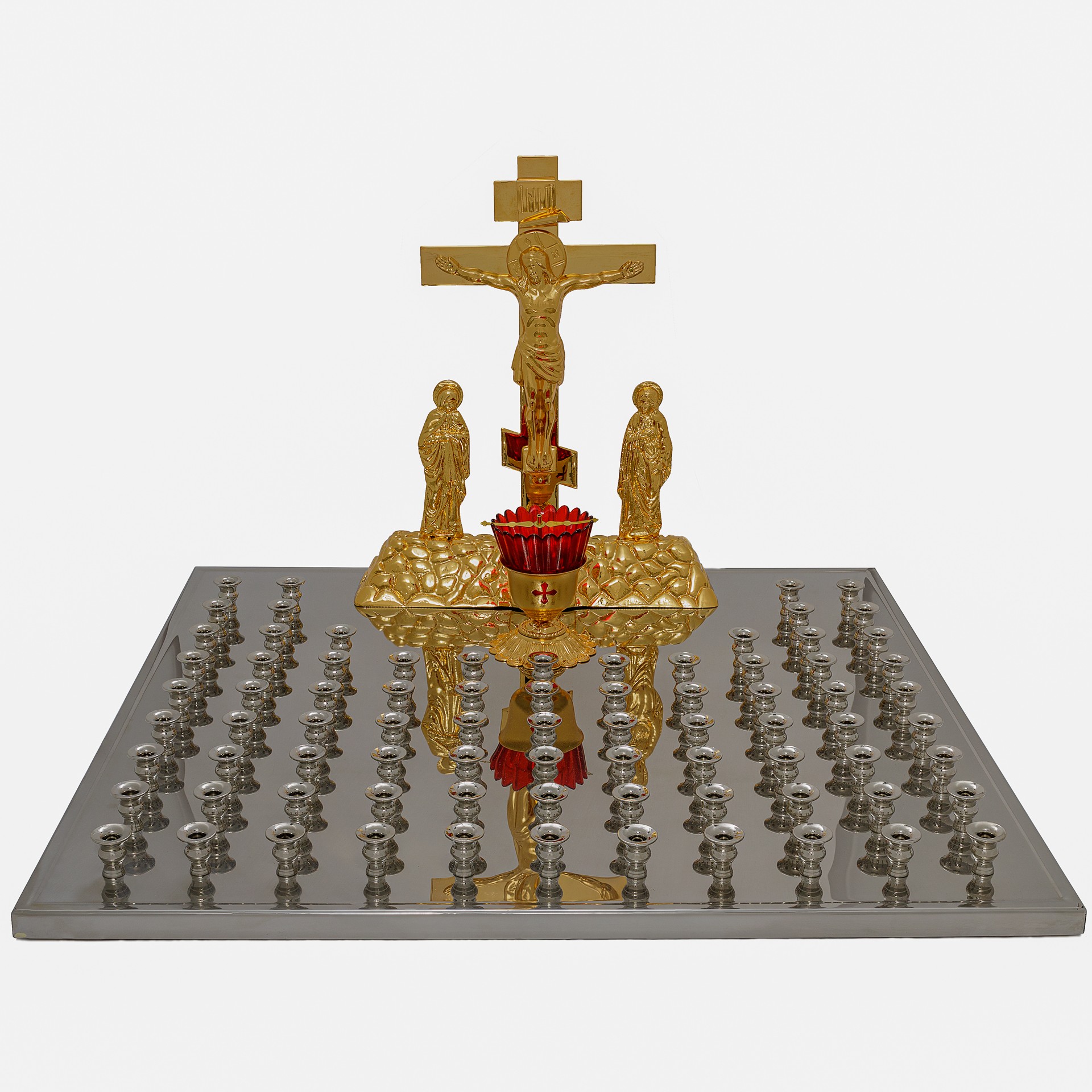 Крышка панихидного стола 80 свечей нержавеющая сталь частичное золочение