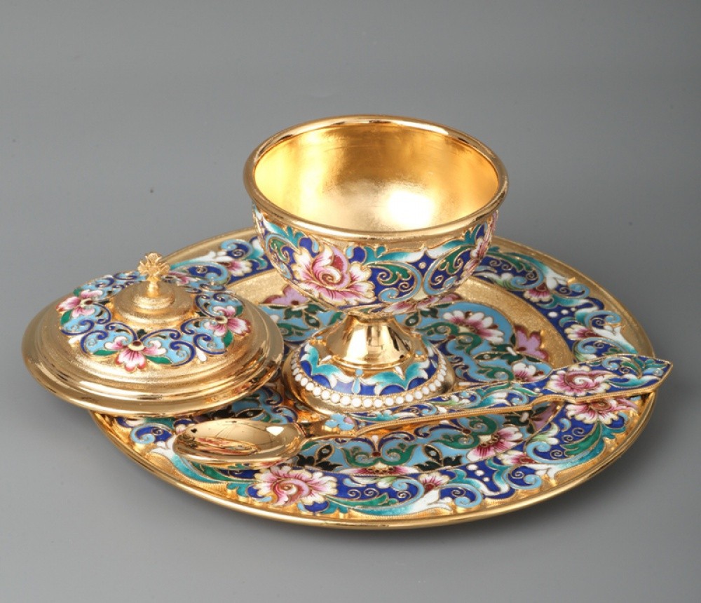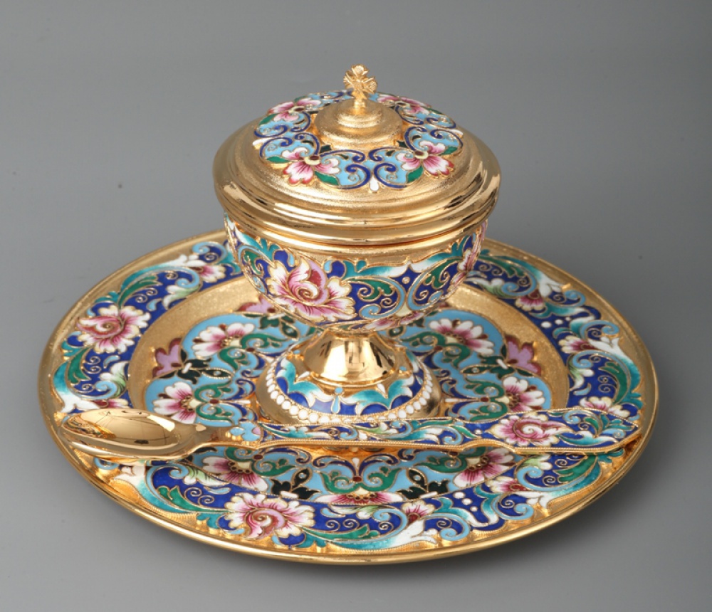 Ладаница на блюде филигрань, эмаль, роспись / золочение
