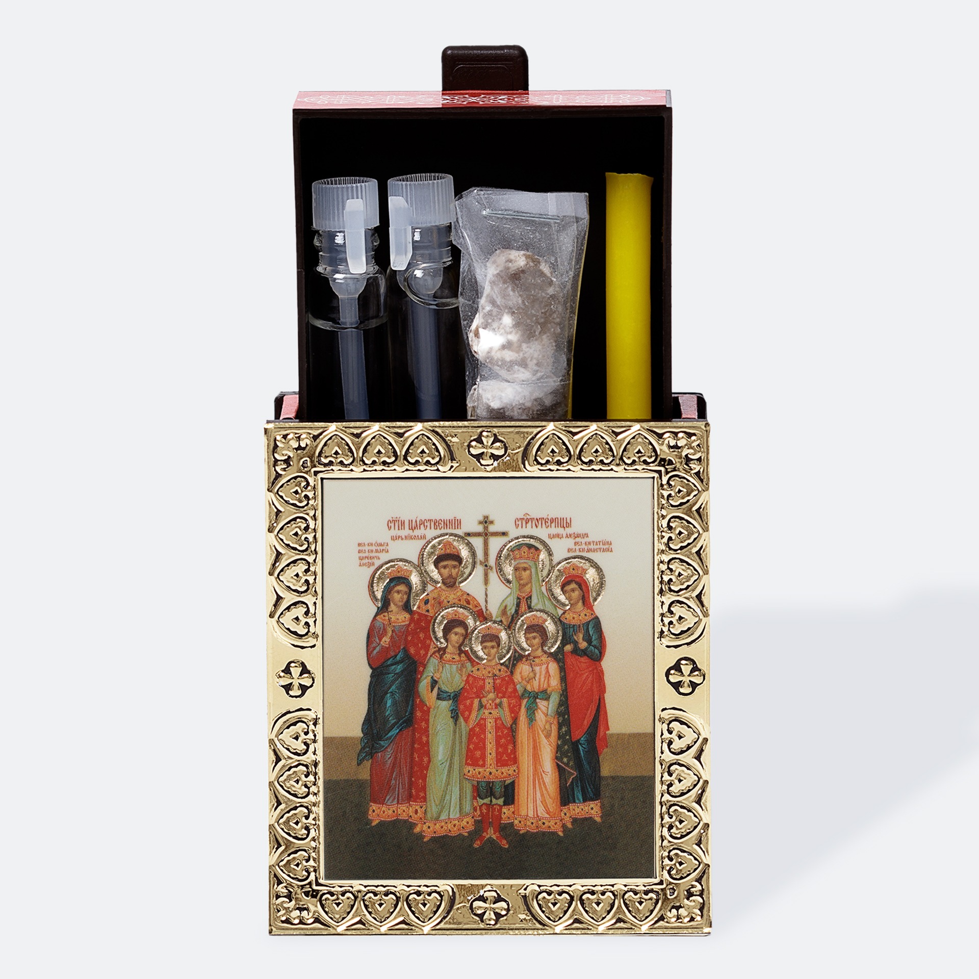 Изготовливается на заказ с любым ликом. Минимальный заказ 300 штук. В наборе: освященный ладан, масло, свеча и святая вода. Не рекомендуется хранение и транспортировка при температуре ниже 0 градусов без специальной упаковки.