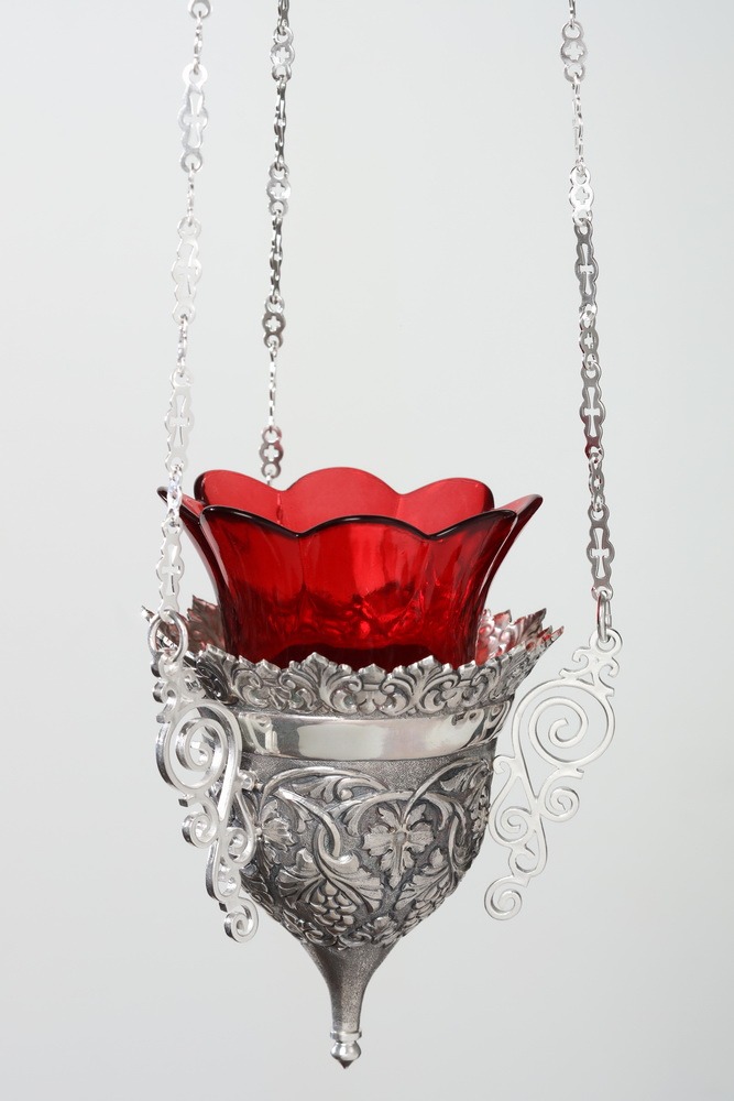 Стаканы из цветного хрусталя временно отсутствуют. Лампады можно изготовить только с прозрачным хрустальным стаканом либо со стаканом из окрашеного цветного стекла.