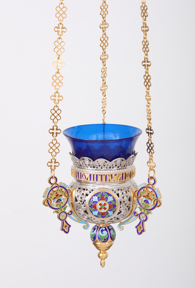 Лампада чеканная №36 филигрань, эмаль / золочение / серебро (УИН)