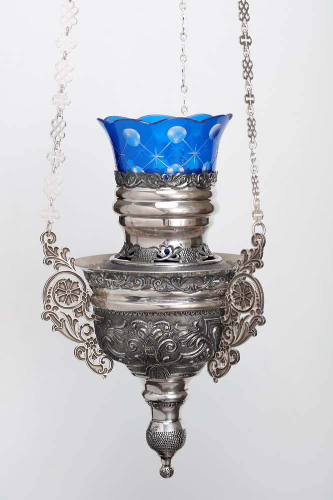 Стаканы из цветного хрусталя временно отсутствуют. Лампады можно изготовить только с прозрачным хрустальным стаканом либо со стаканом из окрашеного цветного стекла.
