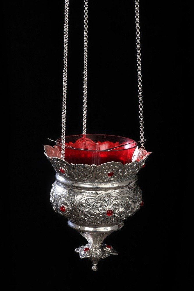 Стаканы из цветного хрусталя временно отсутствуют. Лампады можно изготовить только с прозрачным хрустальным стаканом либо со стаканом из окрашеного цветного стекла.