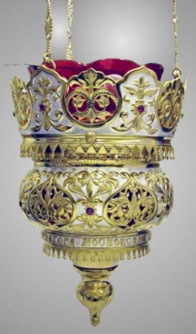 Стаканы из цветного хрусталя временно отсутствуют. Лампады можно изготовить только с прозрачным хрустальным стаканом либо со стаканом из окрашеного цветного стекла.