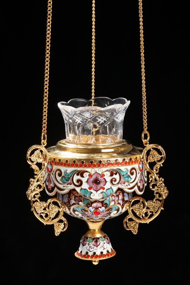 Стаканы из цветного хрусталя временно отсутствуют. Лампады можно изготовить только с прозрачным хрустальным стаканом либо со стаканом из окрашеного цветного стекла.