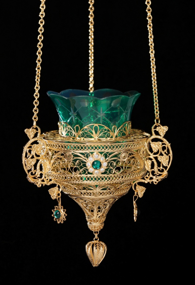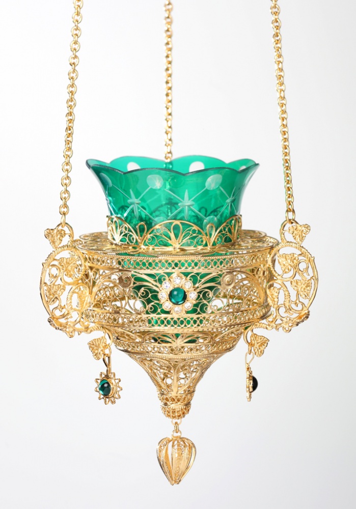 Стаканы из цветного хрусталя временно отсутствуют. Лампады можно изготовить только с прозрачным хрустальным стаканом либо со стаканом из окрашеного цветного стекла.