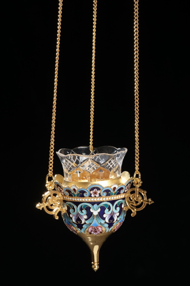 Стаканы из цветного хрусталя временно отсутствуют. Лампады можно изготовить только с прозрачным хрустальным стаканом либо со стаканом из окрашеного цветного стекла.