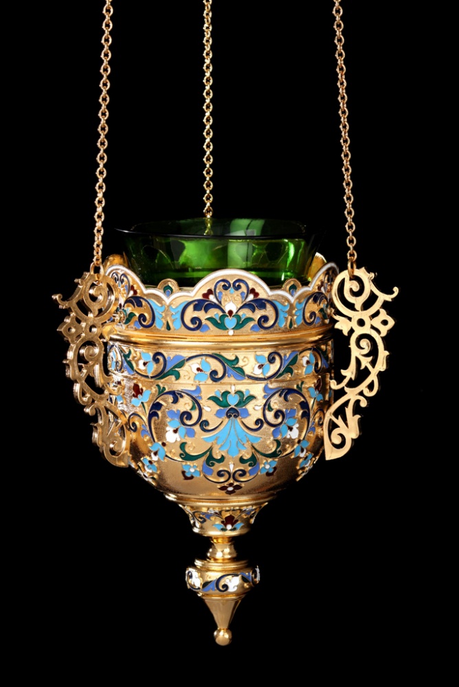 Стаканы из цветного хрусталя временно отсутствуют. Лампады можно изготовить только с прозрачным хрустальным стаканом либо со стаканом из окрашеного цветного стекла.