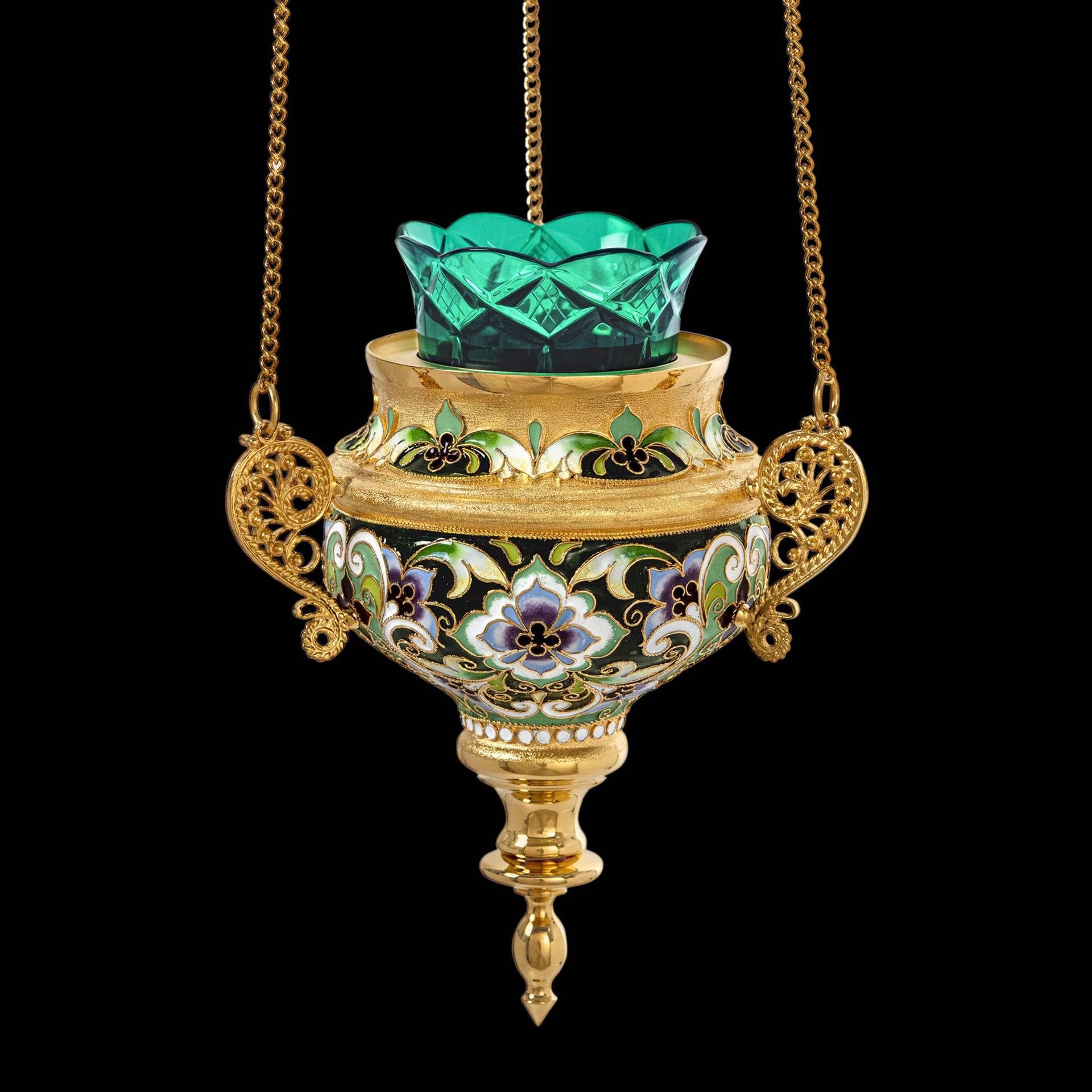 Стаканы из цветного хрусталя временно отсутствуют. Лампады можно изготовить только с прозрачным хрустальным стаканом либо со стаканом из окрашеного цветного стекла.