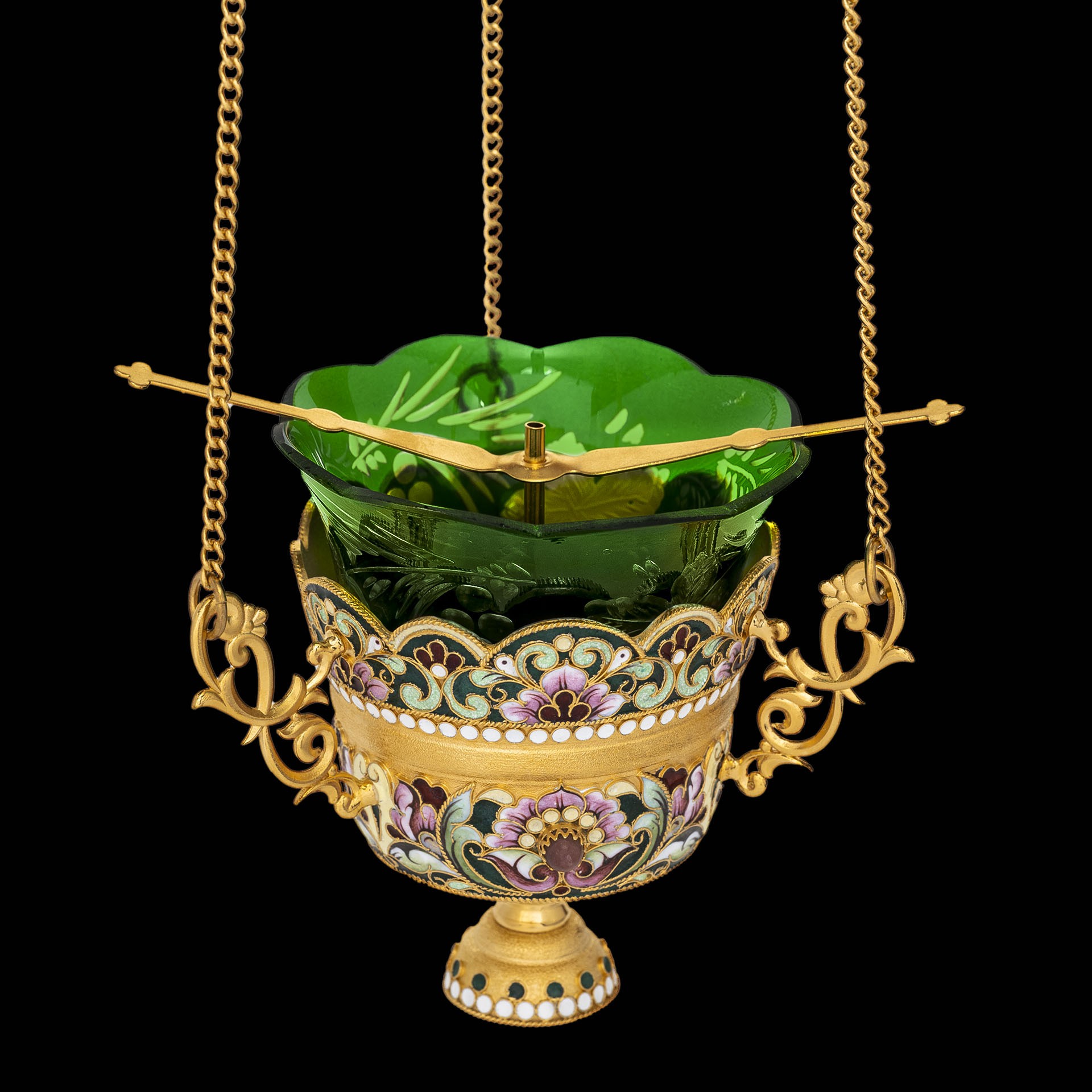 Стаканы из цветного хрусталя временно отсутствуют. Лампады можно изготовить только с прозрачным хрустальным стаканом либо со стаканом из окрашеного цветного стекла.